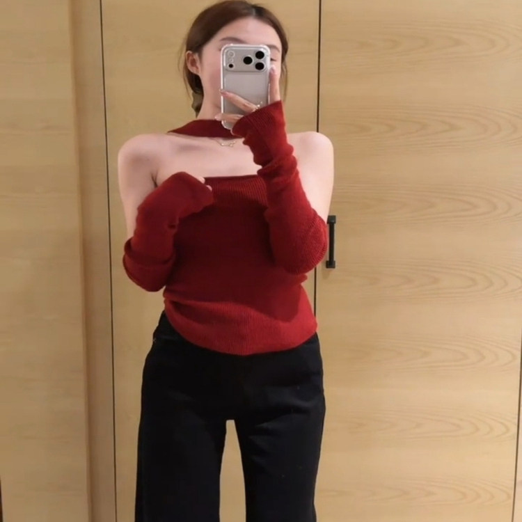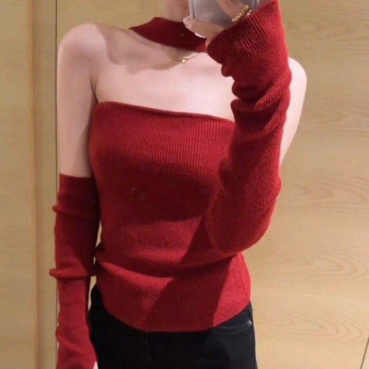 跨年穿搭性感抹胸可爱小红帽限定战袍新年红挂脖上衣女半身裙套装