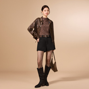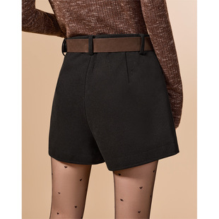 简约通勤百搭显瘦显腿长呢绒短裤 IEF 韩版 子2025秋冬新款 爱依服裤