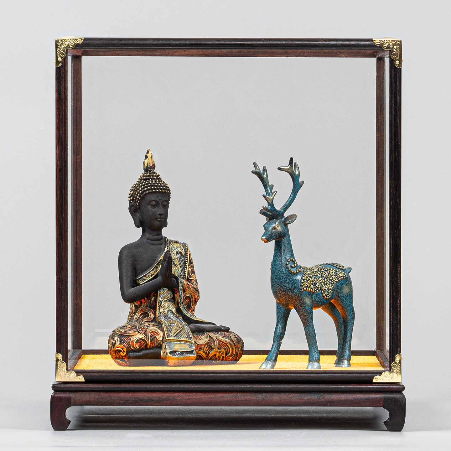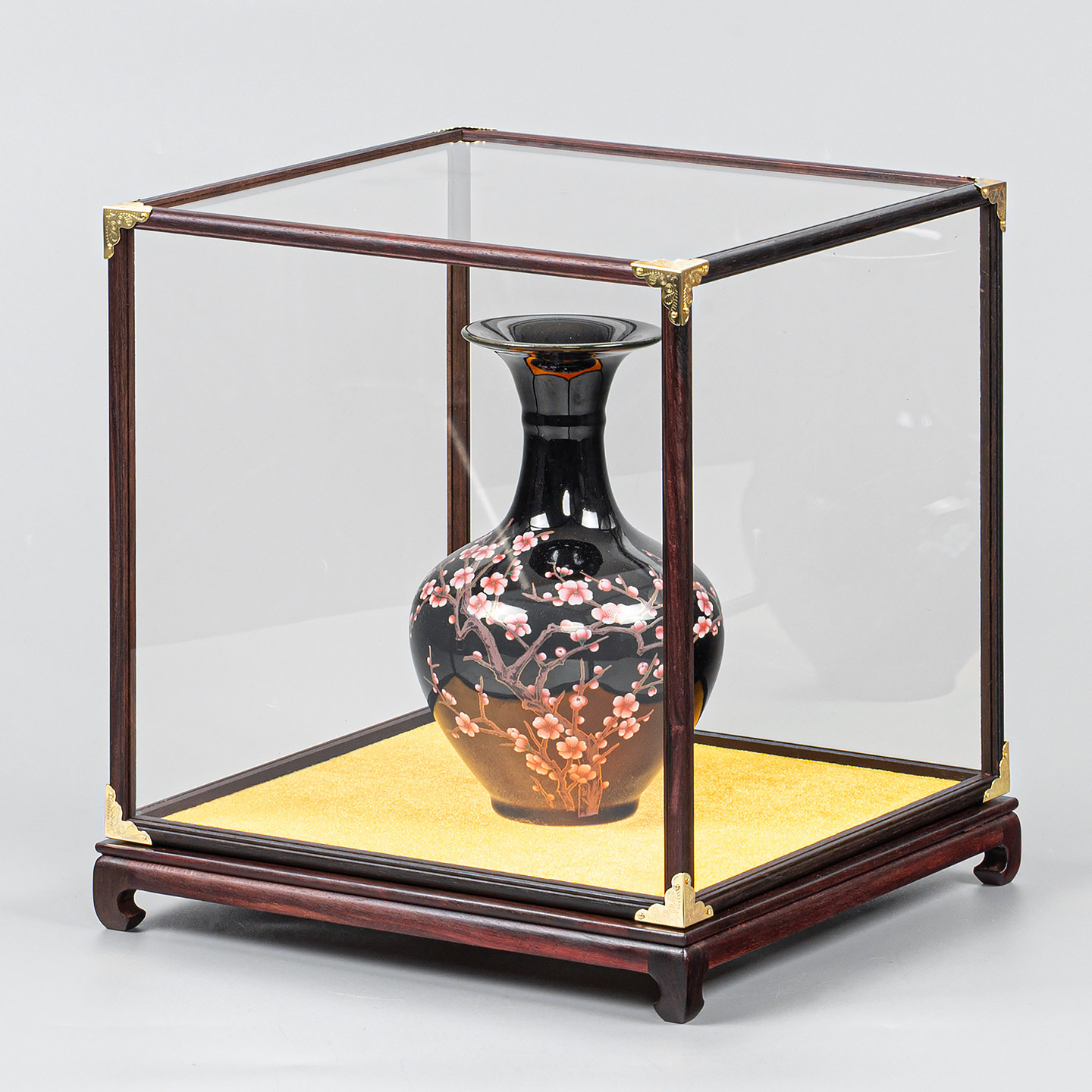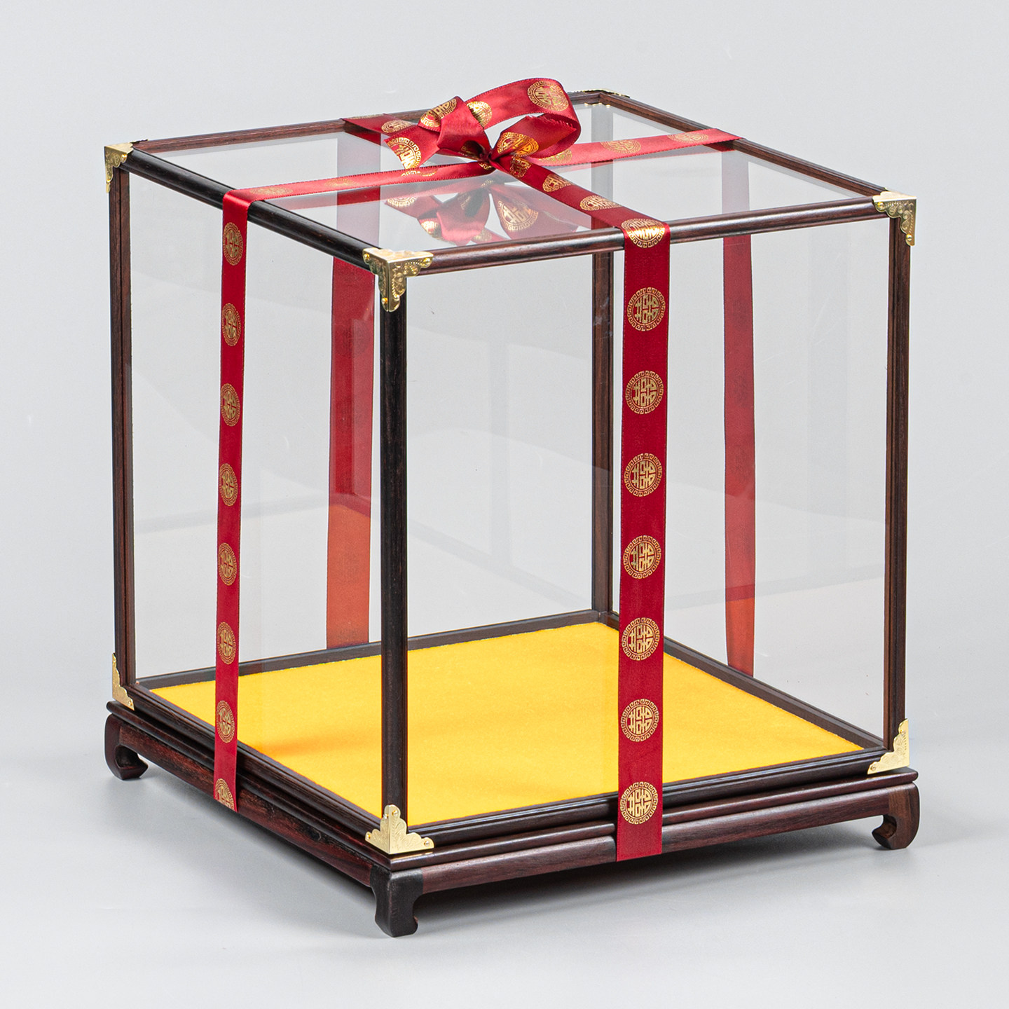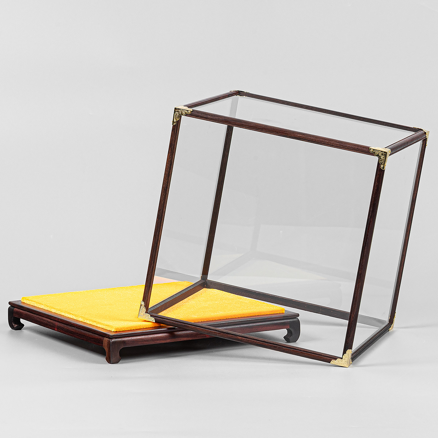 红木玻璃罩佛像工艺品摆件防尘罩古董花瓶玉石如意透明宝笼展示盒