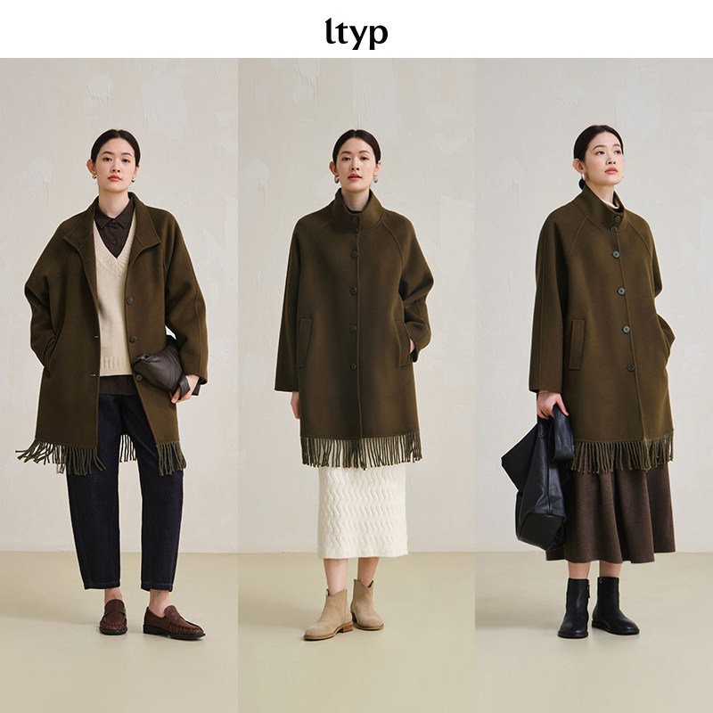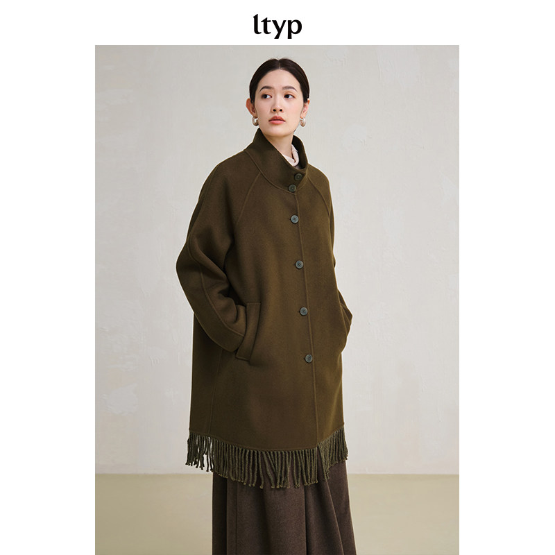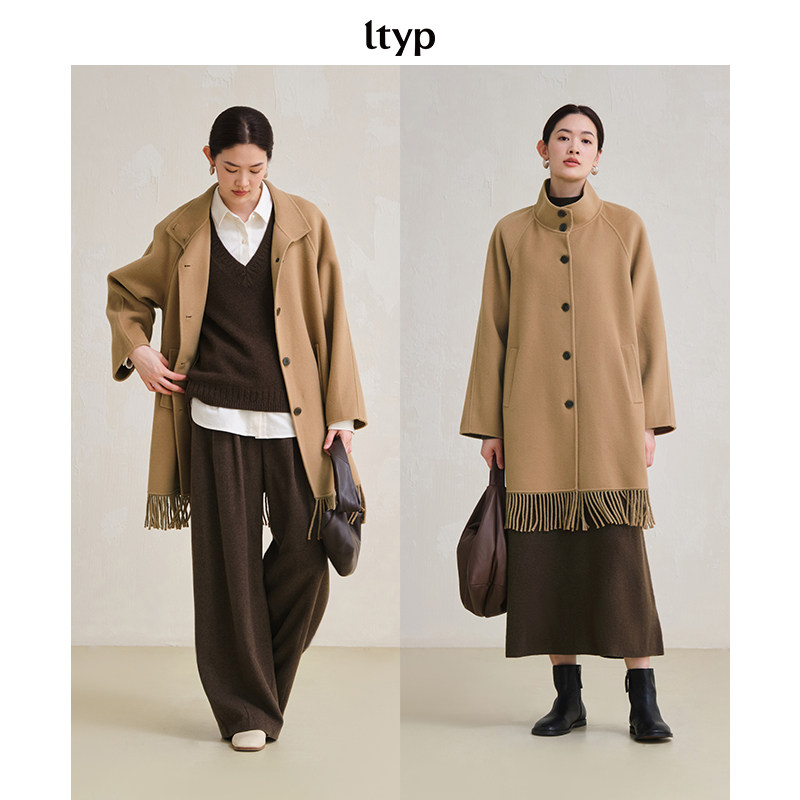 ltyp旅途原品 100支100%澳毛手工双面呢流苏大衣女冬 限量五折