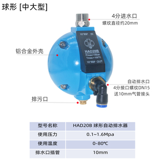 压缩空气过滤器自动排水器AD202自动放水阀4分DN15免通电HAD20B