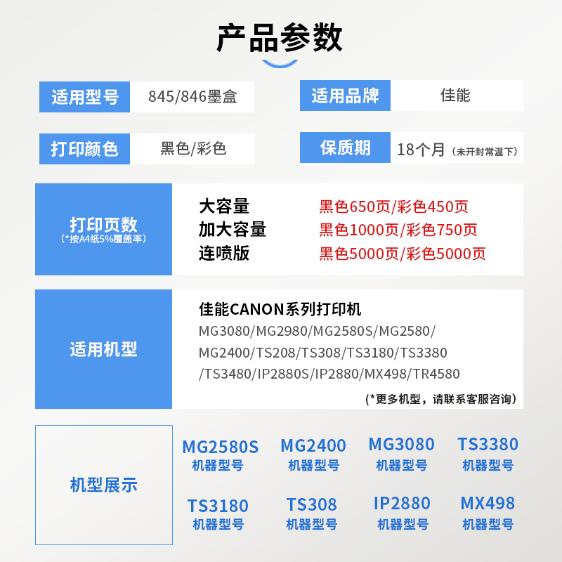 208 TR4580打印机PG845黑色CL846 4580 2880 2500 3480 308 2400 3080 MG2580s 适用佳能845墨盒可加墨TS3380