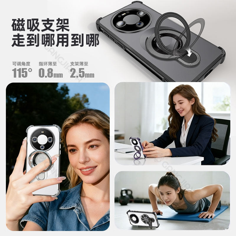 柠乐适用华为Mate80ProMax手机壳mata70Air磁吸支架气囊mete60Pro透明保护套mt50e新款 m40镜头全包防摔30男女