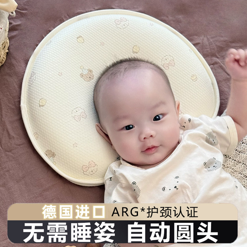德国定型枕婴儿枕头0 1岁纯棉圆头防偏头纠正头型宝宝新生儿四季