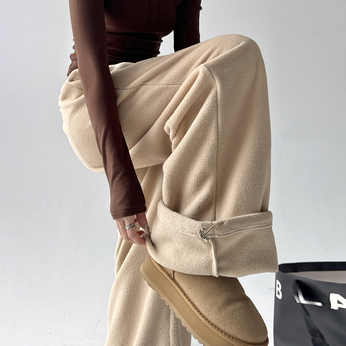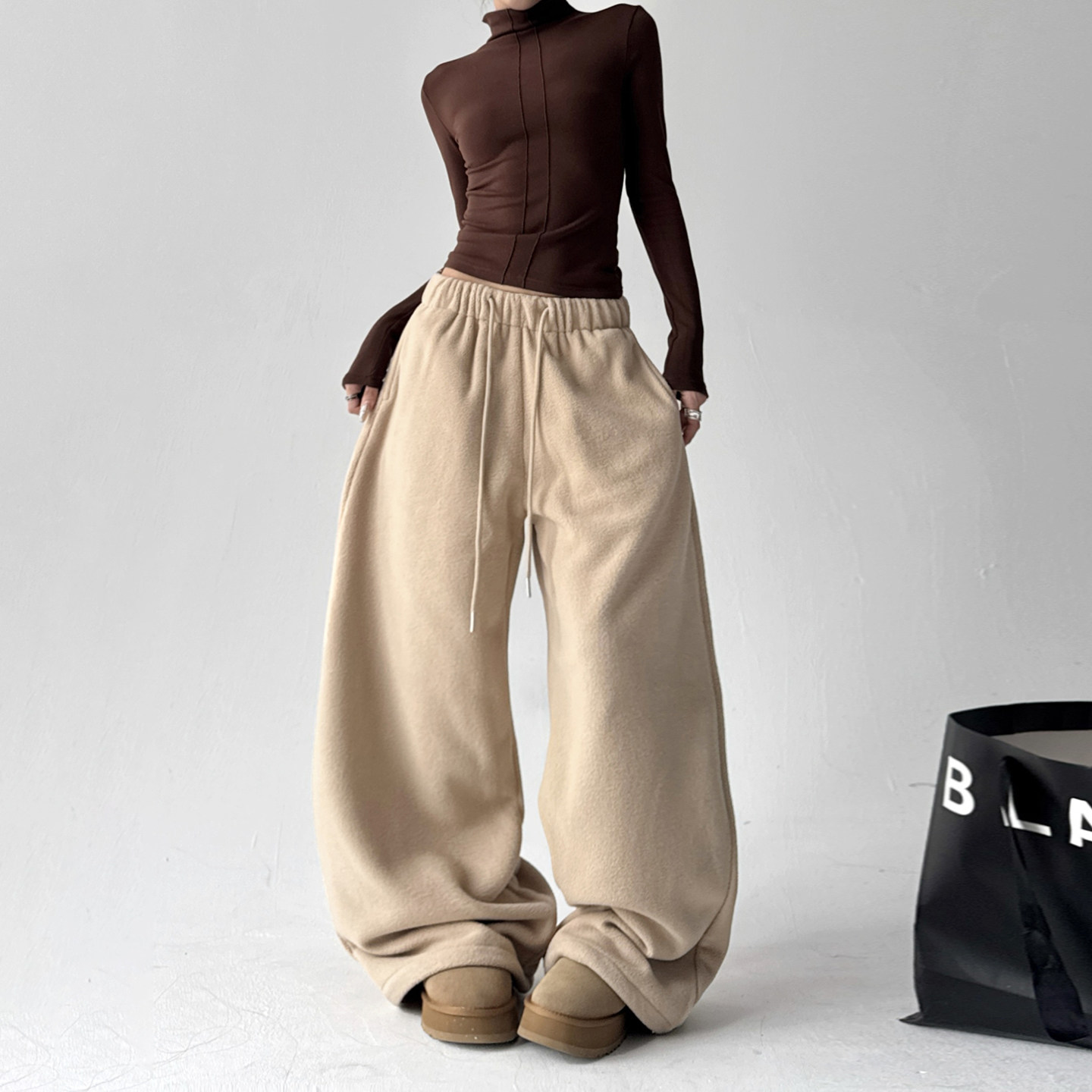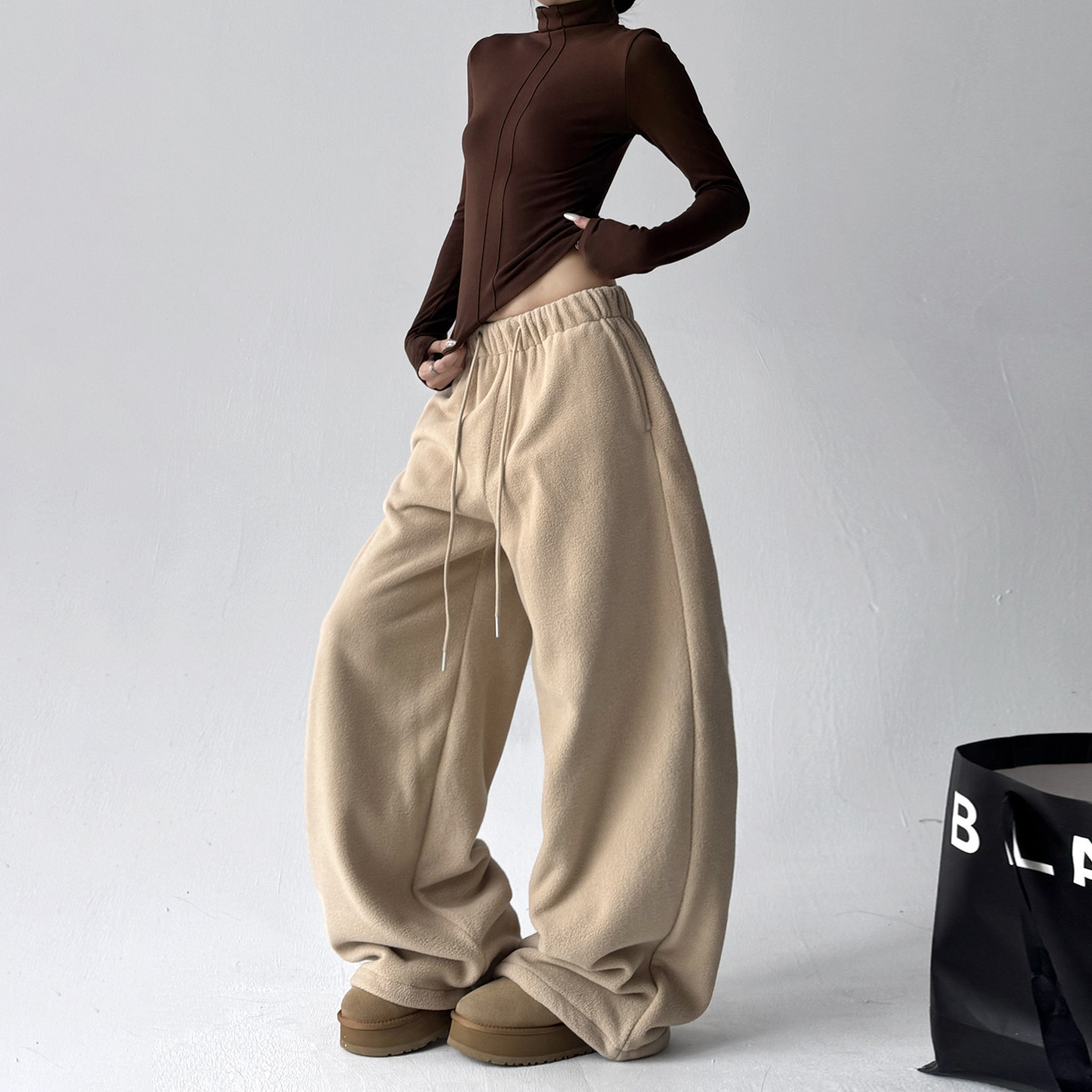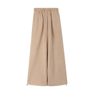高个子卡其色加绒加厚裤 新款 女潮2025冬装 高腰显瘦直筒阔腿卫裤