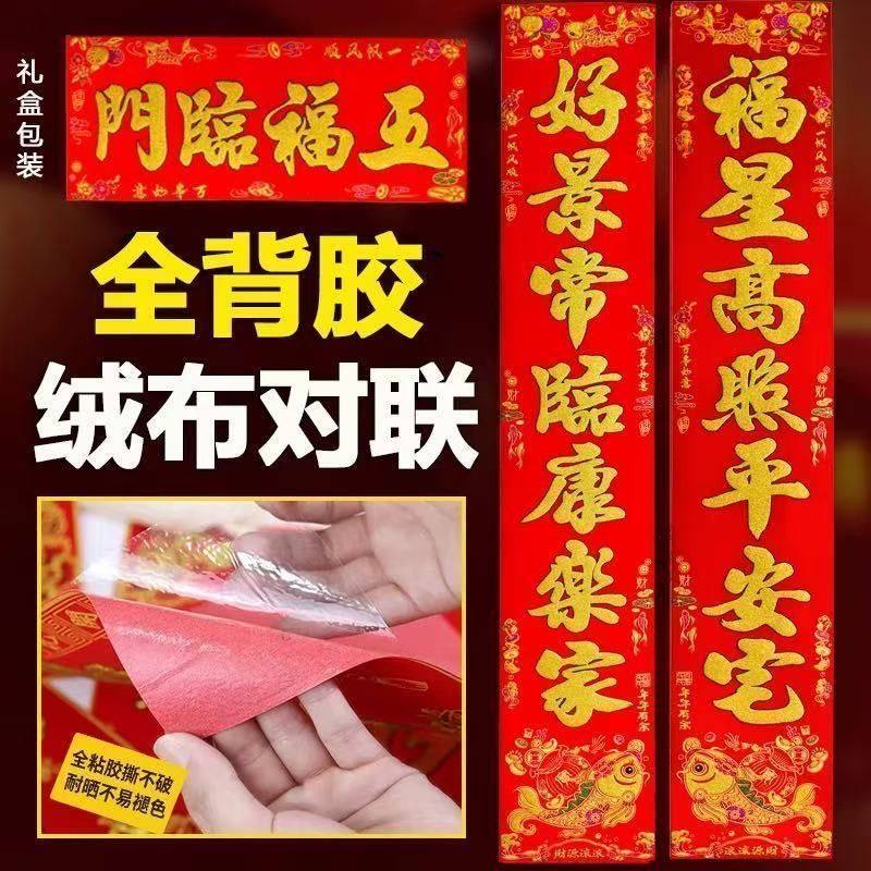 对联2026新款 高档植绒布马年新年新春大气春联春节自带背胶大门贴