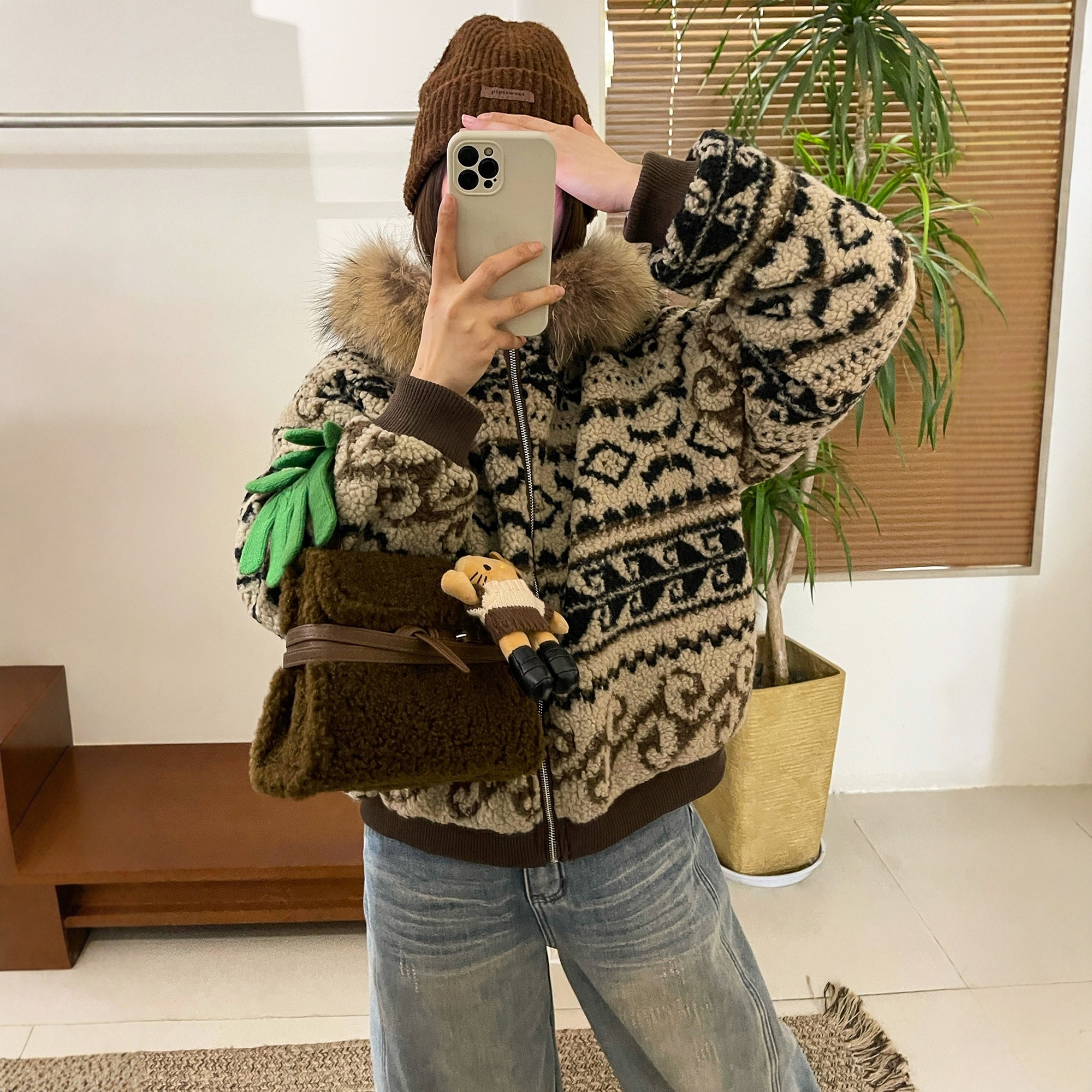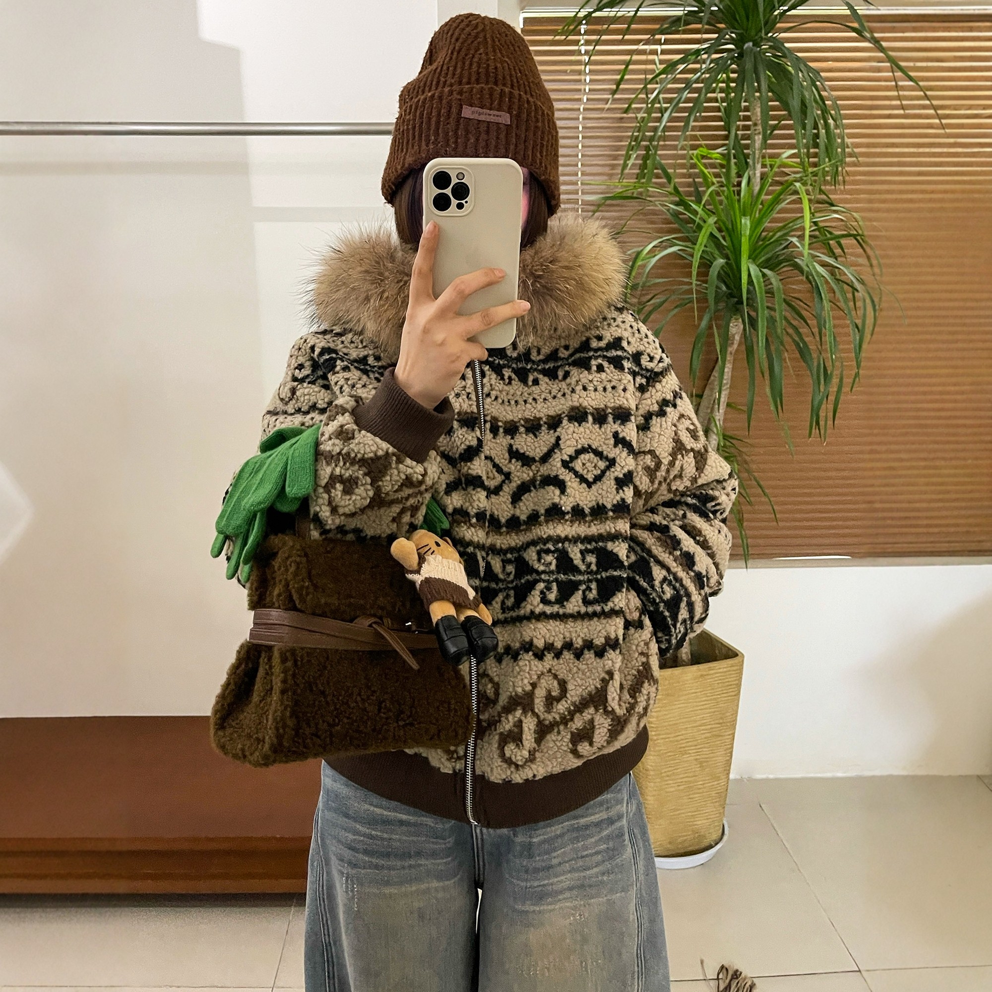 小个子外套潮 欧货女装 羊羔毛连帽毛领羽绒服女欧洲站2025冬装 新款