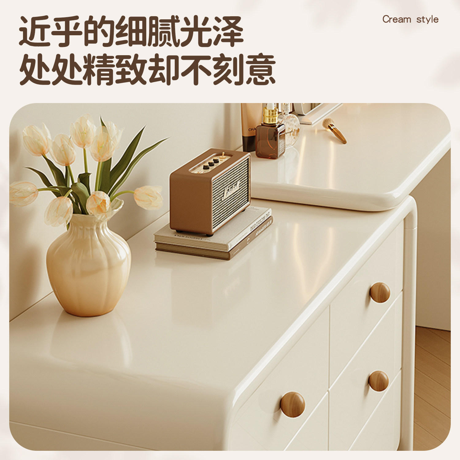 2024奶油风实木烤漆梳妆台卧室现代简约高级感化妆桌新款 斗柜一体