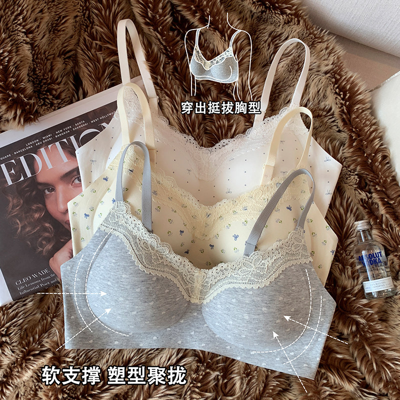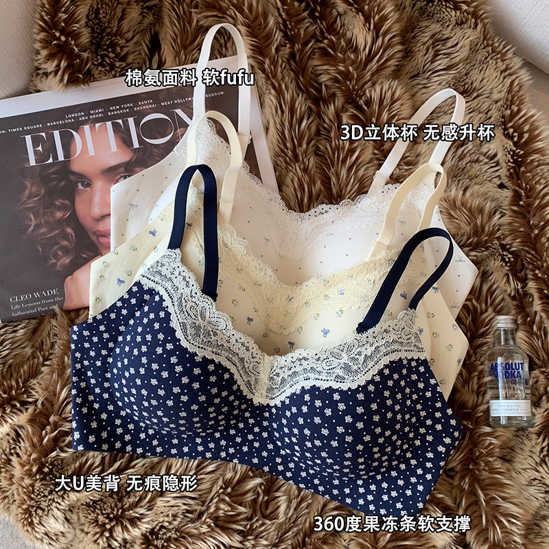 无痕碎花蕾丝内衣女小胸聚拢舒适纯棉甜美少女收副乳防下垂文胸罩