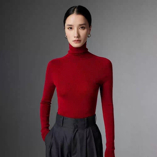 轻薄针织羊毛衫 鄂尔多斯市可机洗一线成衣羊绒打底衫 女堆堆领修身