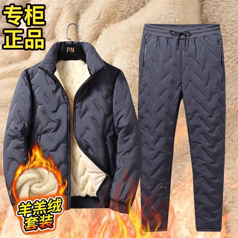 加绒冬装 秋冬季 羊羔绒宽松大码 男士 加厚外套运动保暖棉衣 保暖套装