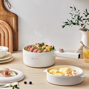 小熊电煮锅DRG 电热锅小电锅电炒锅火锅煮面锅1.6L配蒸笼 P16M2