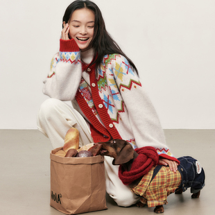 羊毛兔毛软糯慵懒费尔岛提花加厚开衫 HDL 毛衣 买手店 胡可