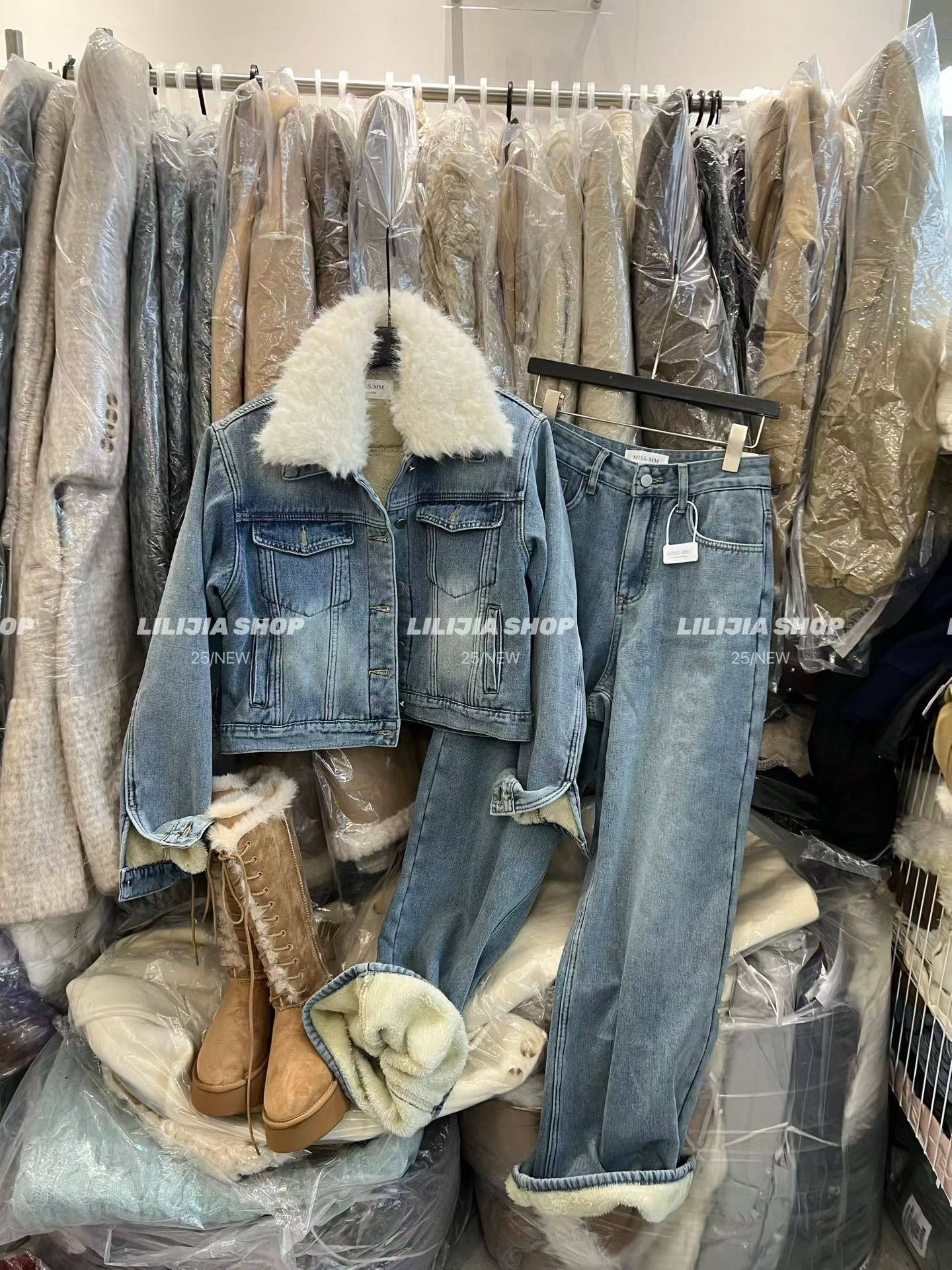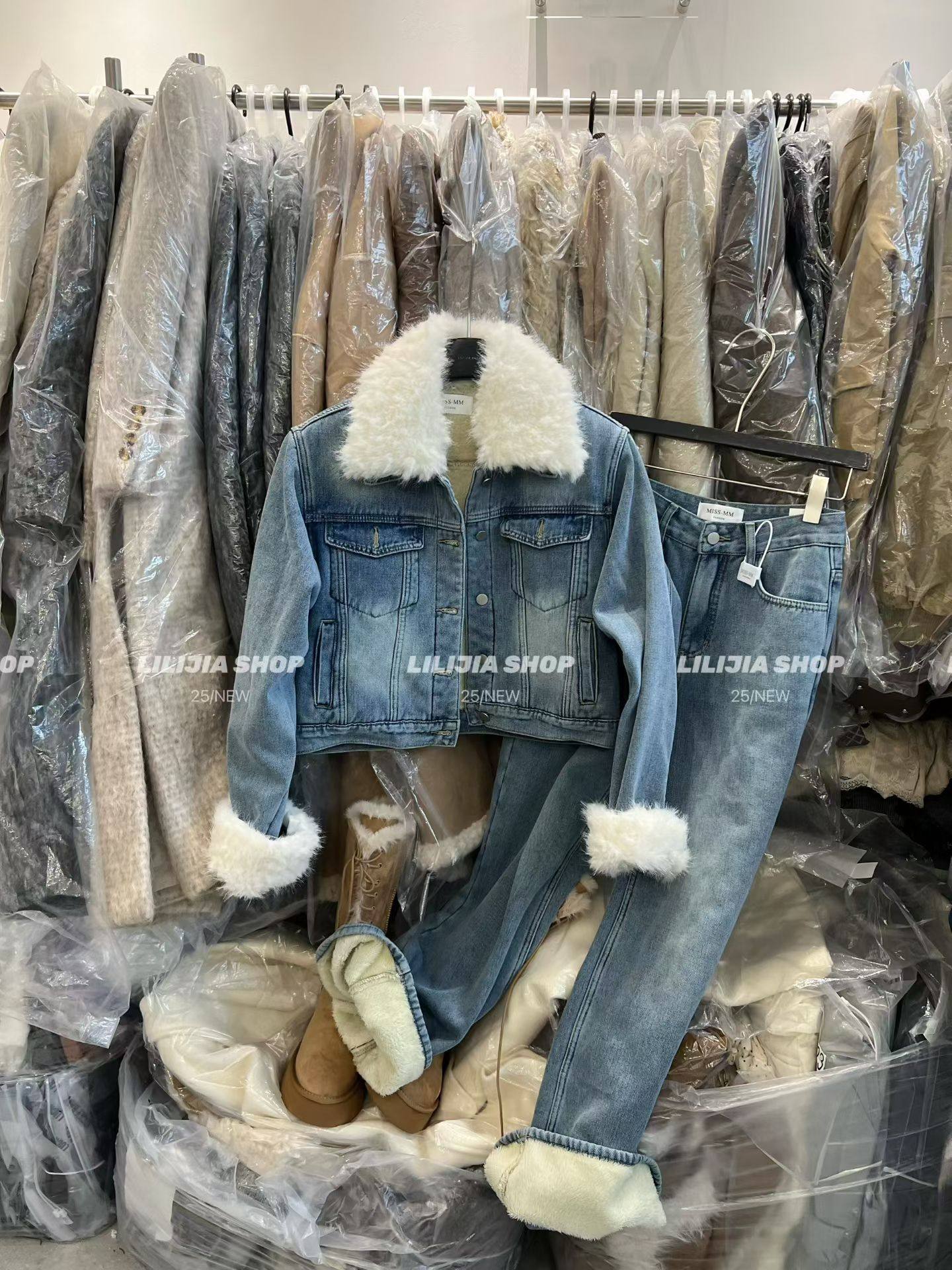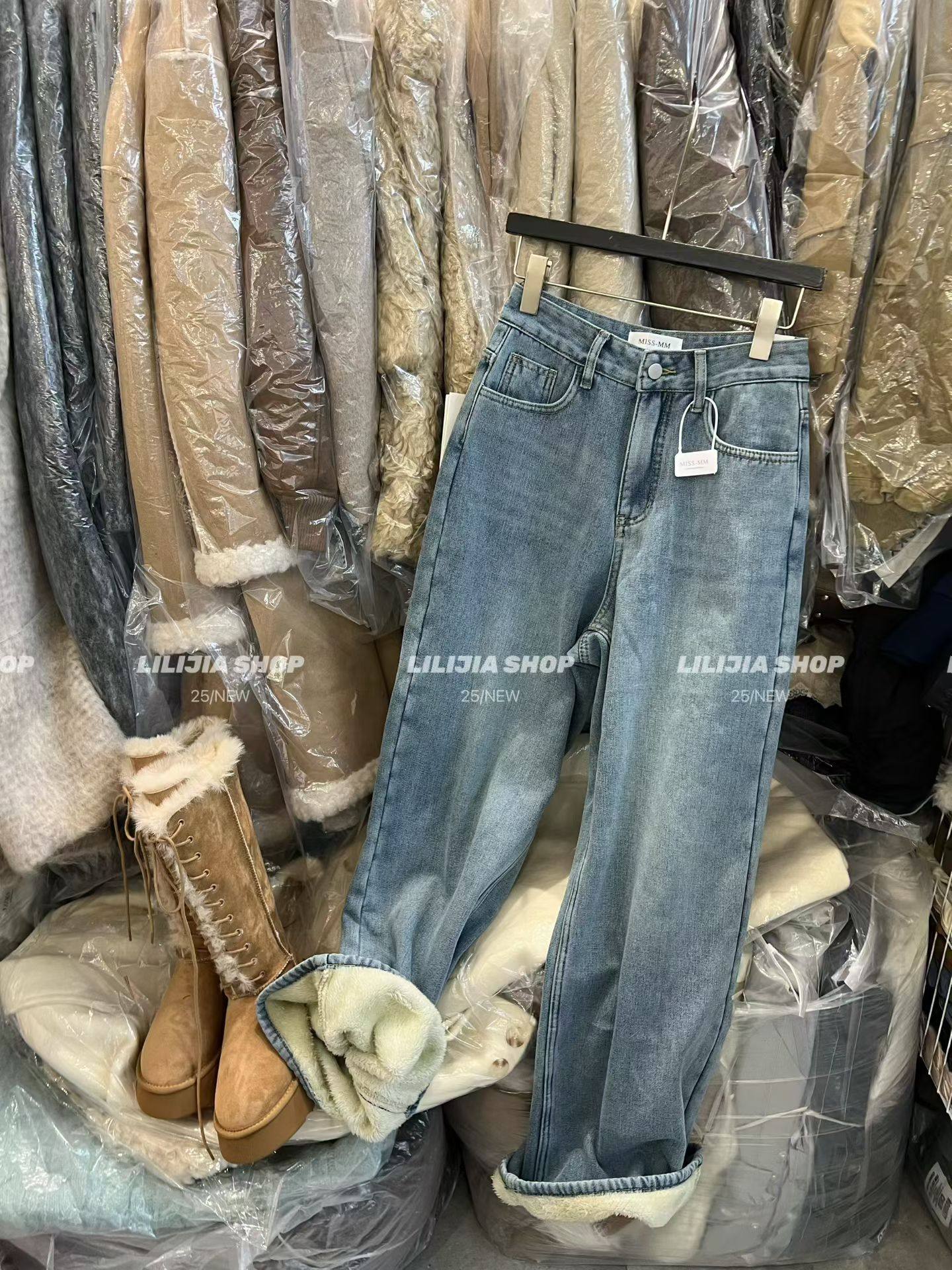 加绒牛仔裤 宽松显瘦百搭加绒毛领牛仔外套 2025秋冬韩版 Miss家