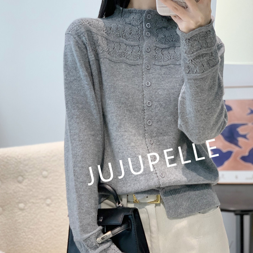 宽松女毛衣 高品质浮雕钩花镂空秋冬针织打底衫 开衫 蜜熊绒羊毛
