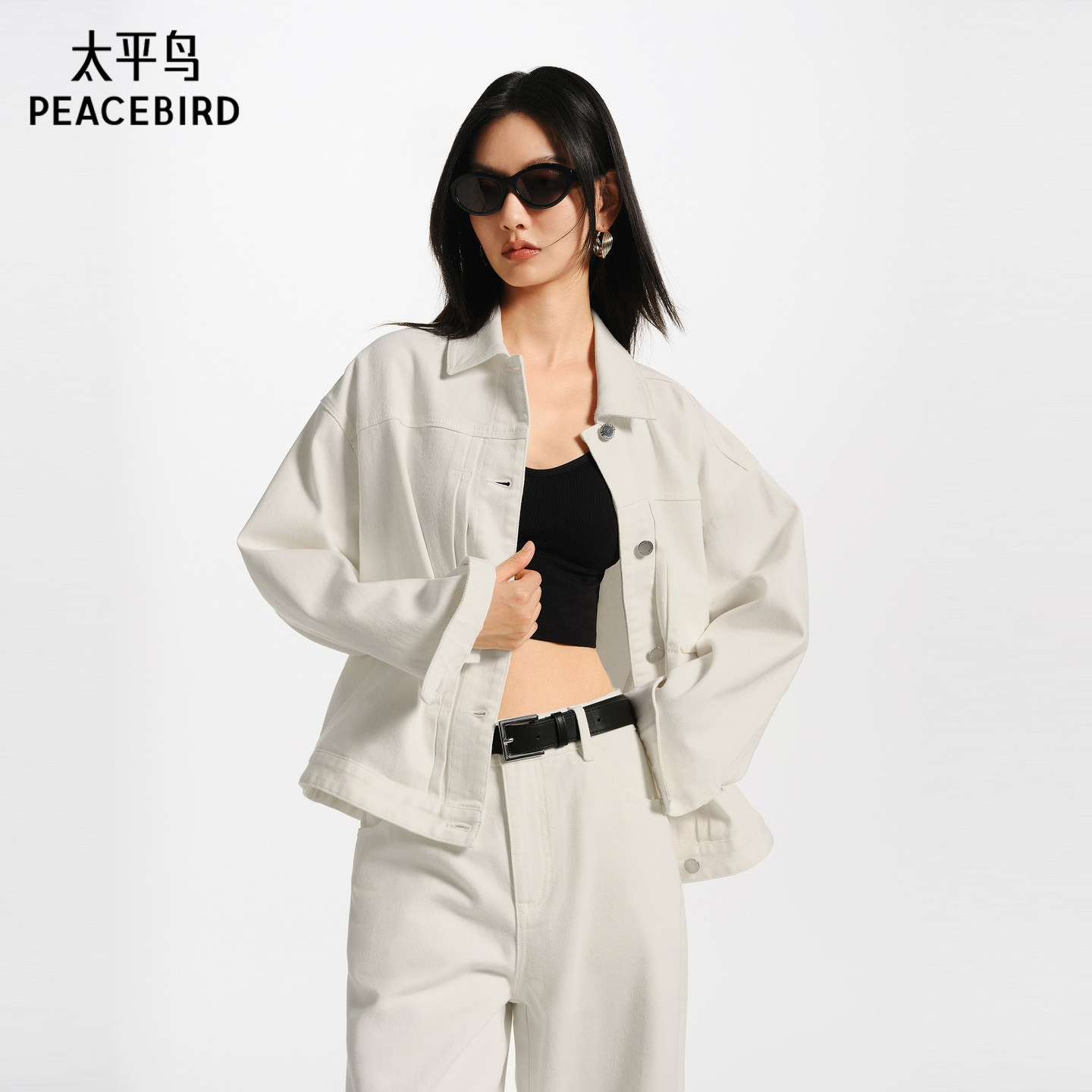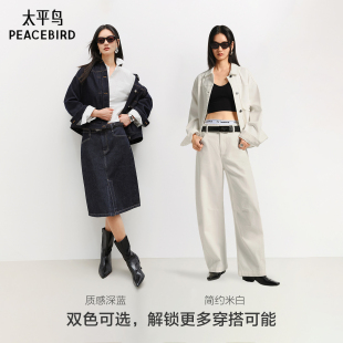 太平鸟原牛外套复古丹宁松弛感阔型包容显瘦双色牛仔外套女