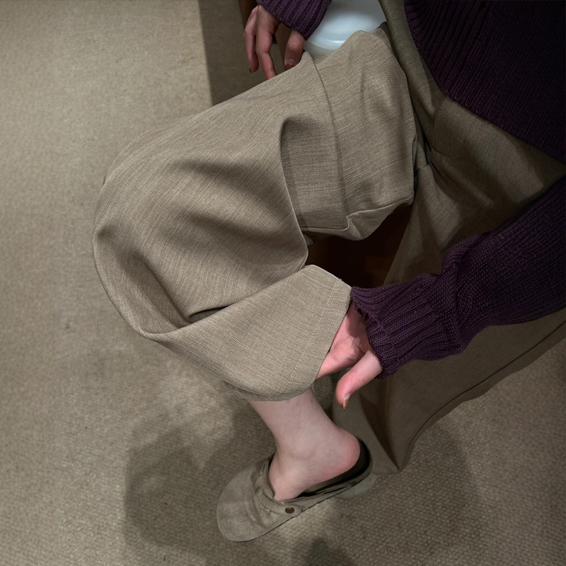 宽松垂感梨形身材显瘦直筒裤 加绒胖mm大码 子 女冬季 灰色糯米休闲裤