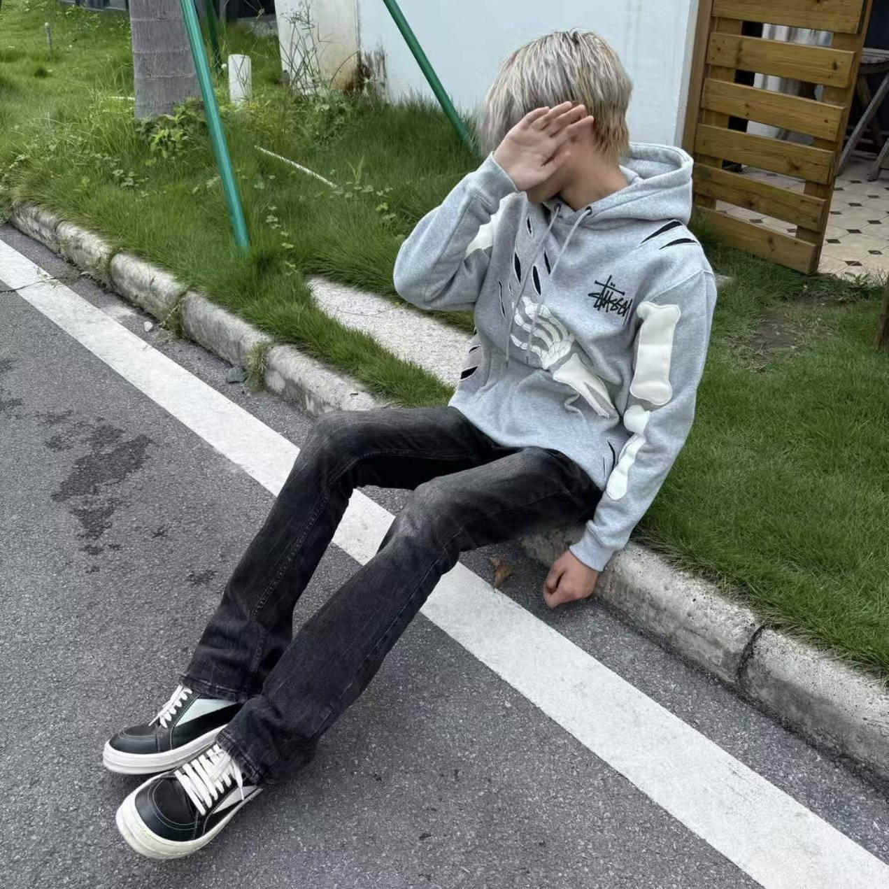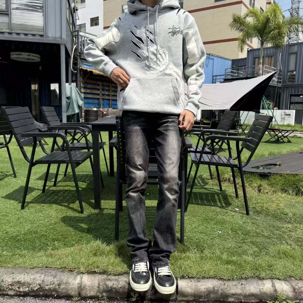 潮 手骨头刺绣重工重磅宽松百搭连帽卫衣男女款 美式 高街斯图家新款