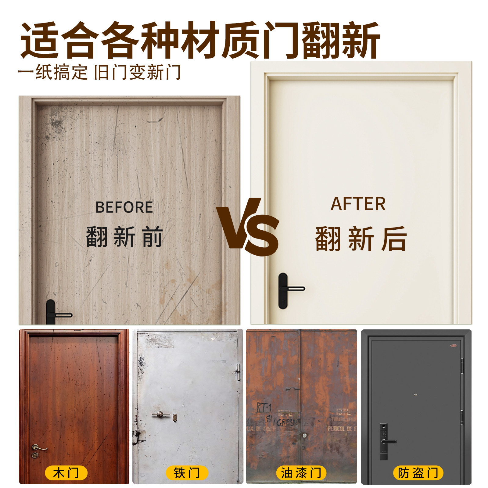 门贴纸高级感卧室门旧木门翻新自粘遮丑改造房门卫生间门改色贴膜