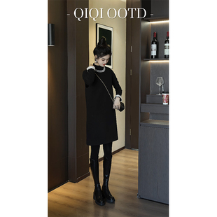 显瘦长裙子 黑色丝绒连衣裙气质打底绝美仙女裙修身 NANA法式