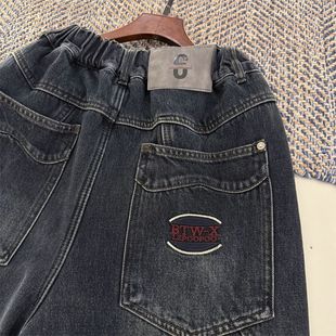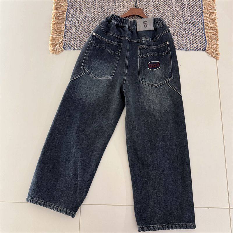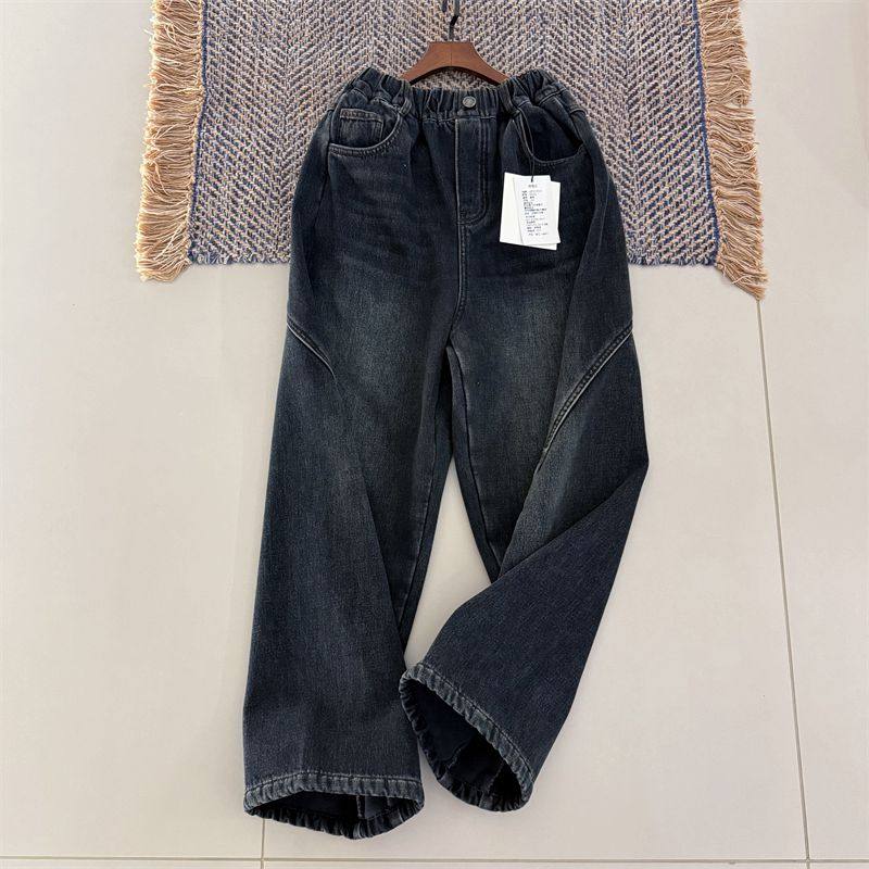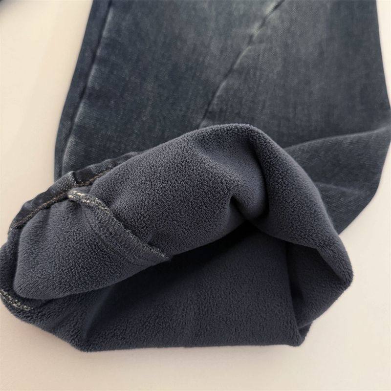 青少年宽松加厚长裤 针织奥利绒 冬季 185中大男童一体绒牛仔裤 165