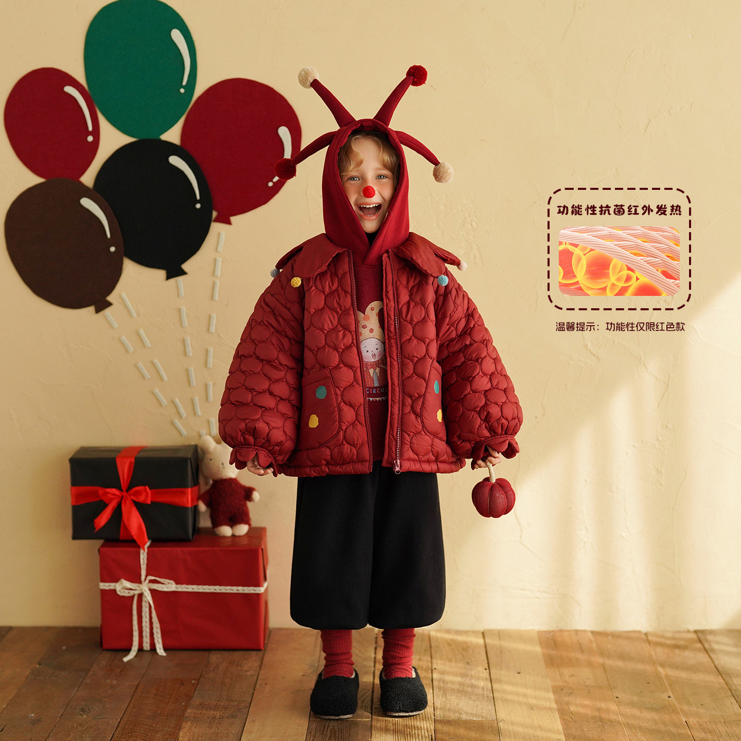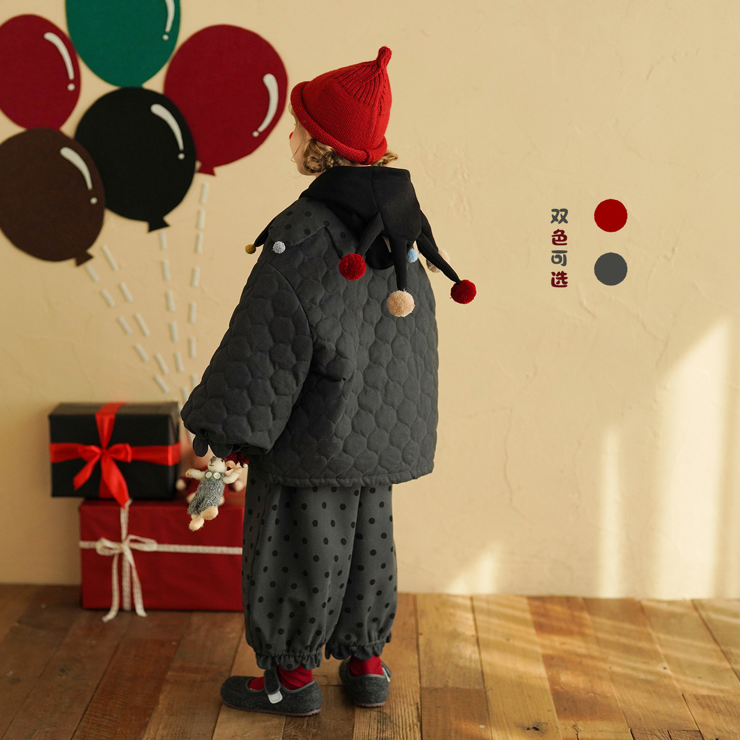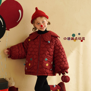 砚台家女童加绒保暖红色夹棉外套冬装 宝宝可爱卡通加厚棉衣服 新款