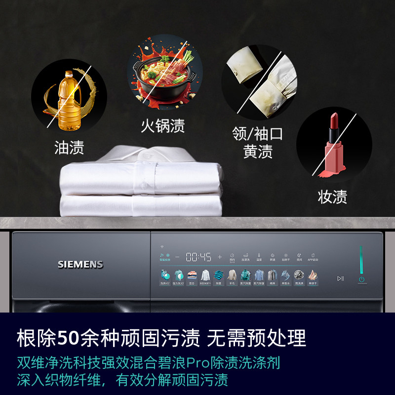 7KG家用滚筒洗衣机蒸汽除皱洗烘一体机7G10 西门子10 小幸熨