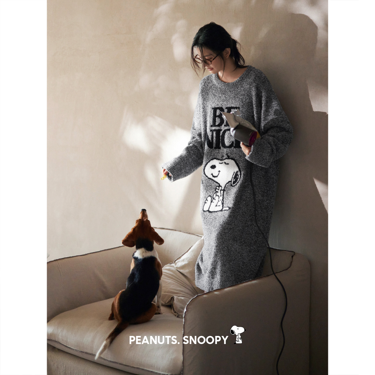 毛绒可爱小狗连帽珊瑚绒睡裙女冬季 家居服加厚保暖睡袍连衣裙 新款