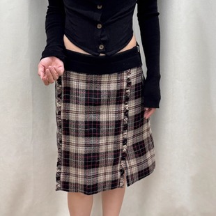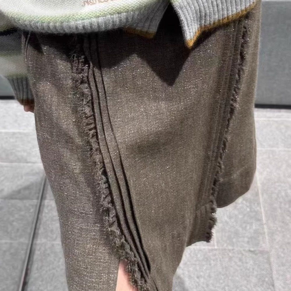 25ss新学院百搭橡筋腰头湖区开叉半身女marche 本 花一 上海高版