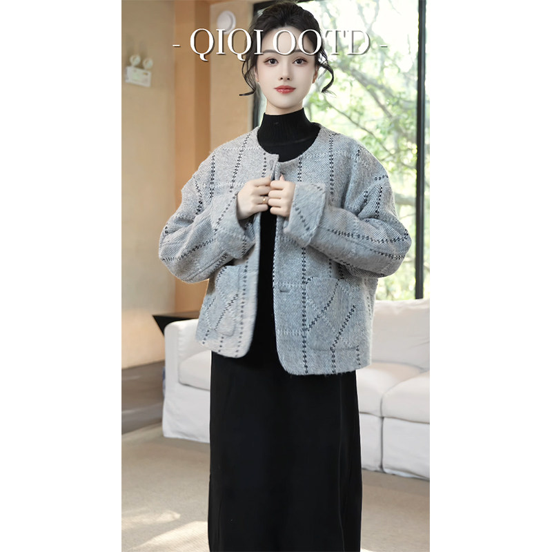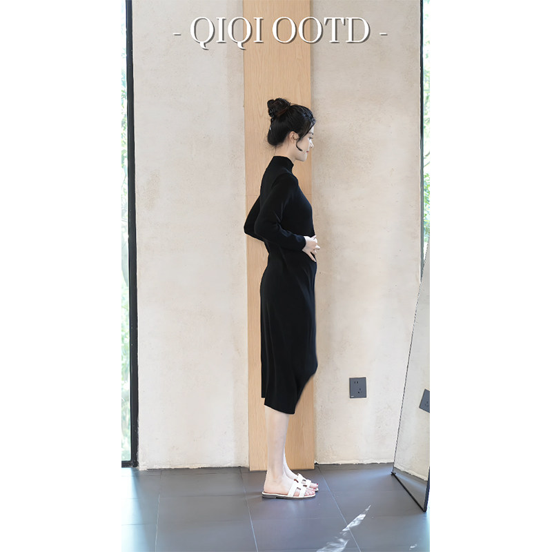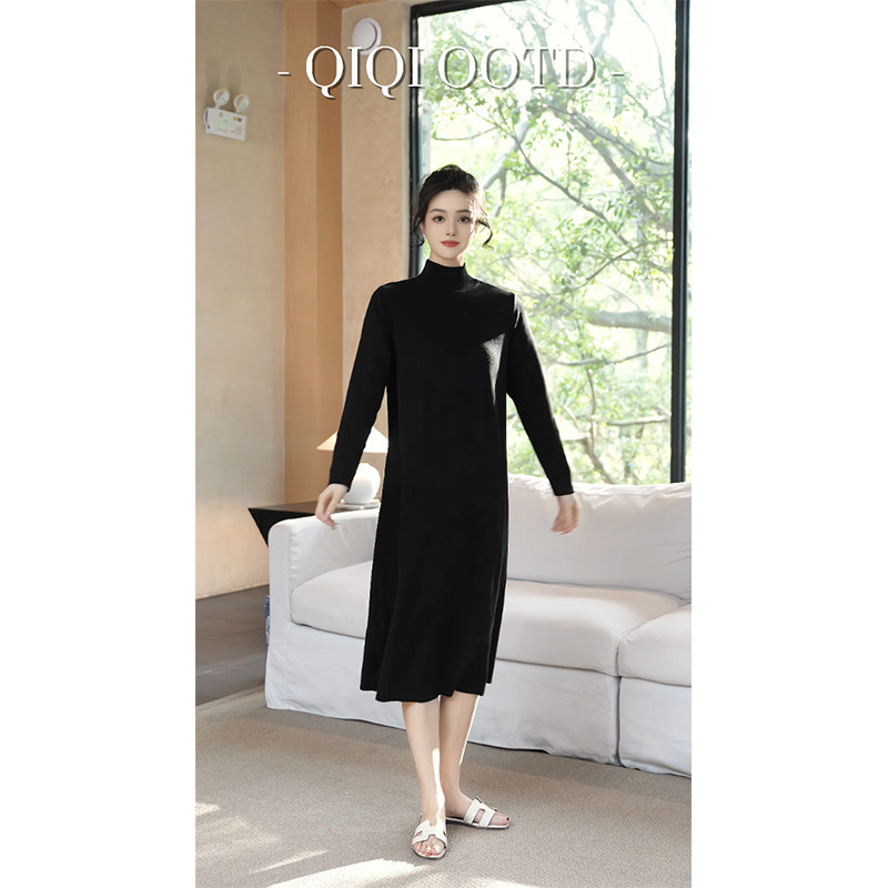 柒院家微胖大码 半高领弹力连衣裙2025秋冬宽松显瘦遮肉中长裙 女装
