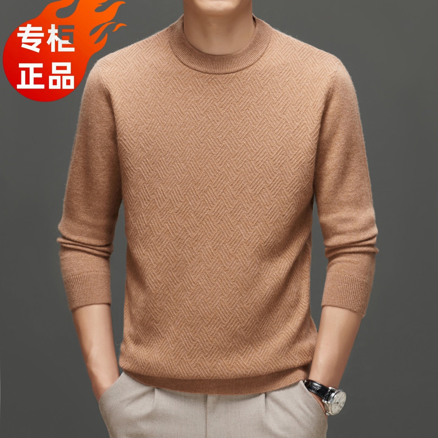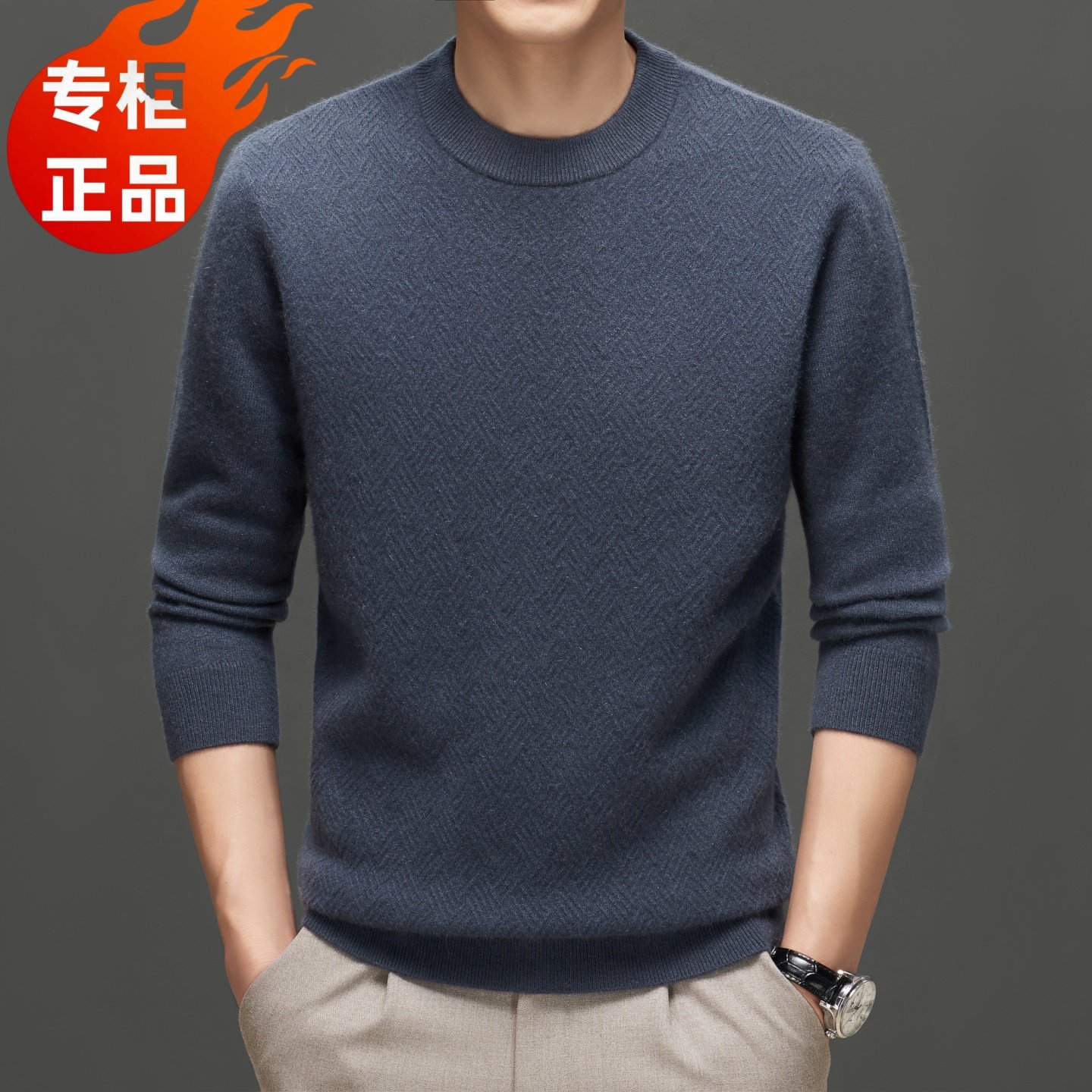低圆领针织衫 高端品牌2025新款 毛衣 纯山羊绒100%纯羊绒衫 春竹男士