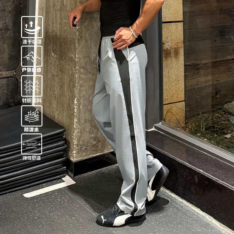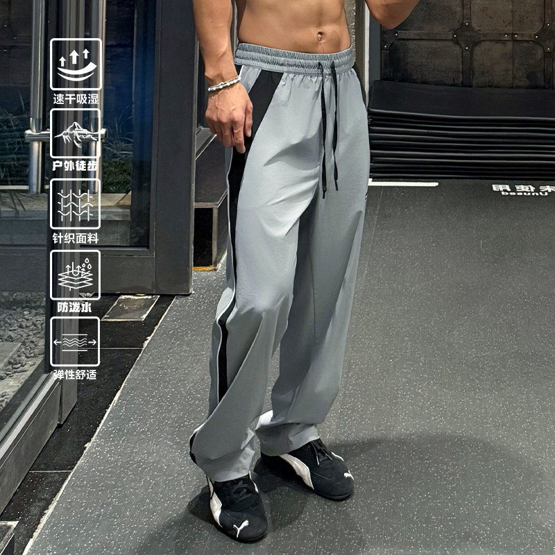 Satjdm运动长裤 跑步国潮 梭织刺绣健身运动速干直筒宽松拼接美式