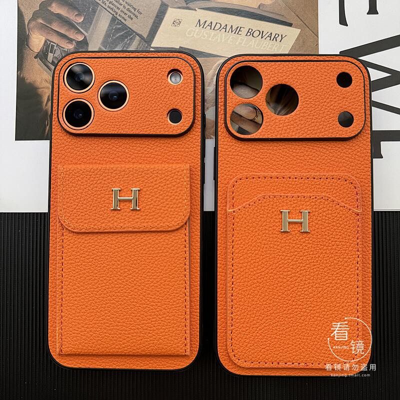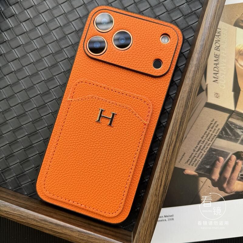 橙色适用苹果17promax手机壳新款 iPhone16pro保护套潮牌H创意14pro可插卡包15plus镜头全包13pm硅胶防摔外壳
