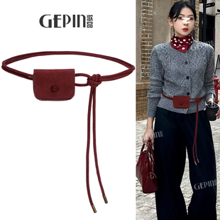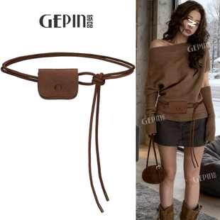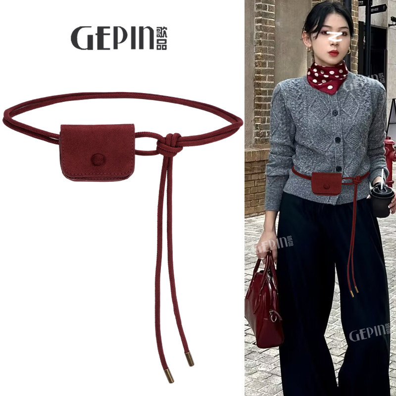 麂皮绒复古腰包细腰带女腰绳流苏装 饰毛衣配连衣裙子皮带2025新款