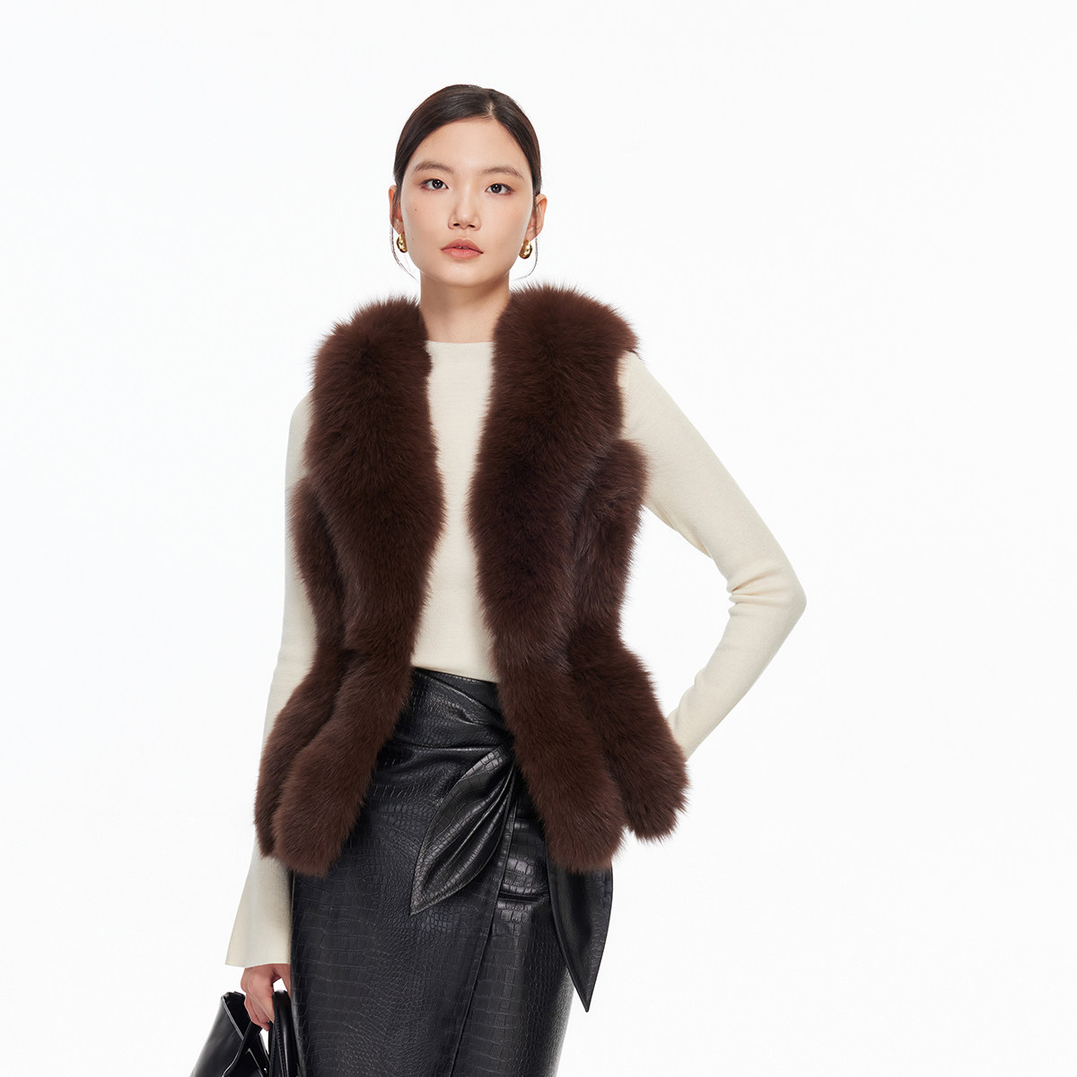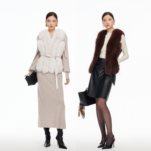 含狐狸毛皮羊皮革腰带上衣 新款 绫致Vero Moda皮草冬季