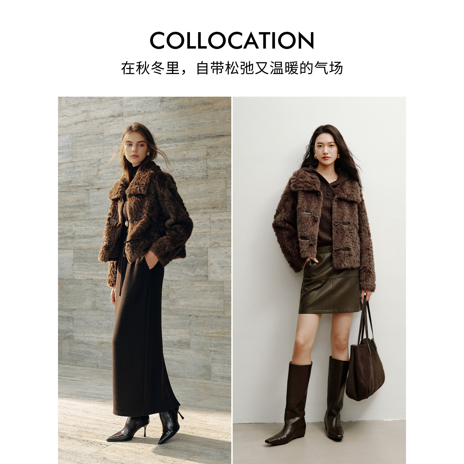 衣香丽影仿狐狸毛环保皮草短外套女2025年冬装 复古翻领松绒系 新款