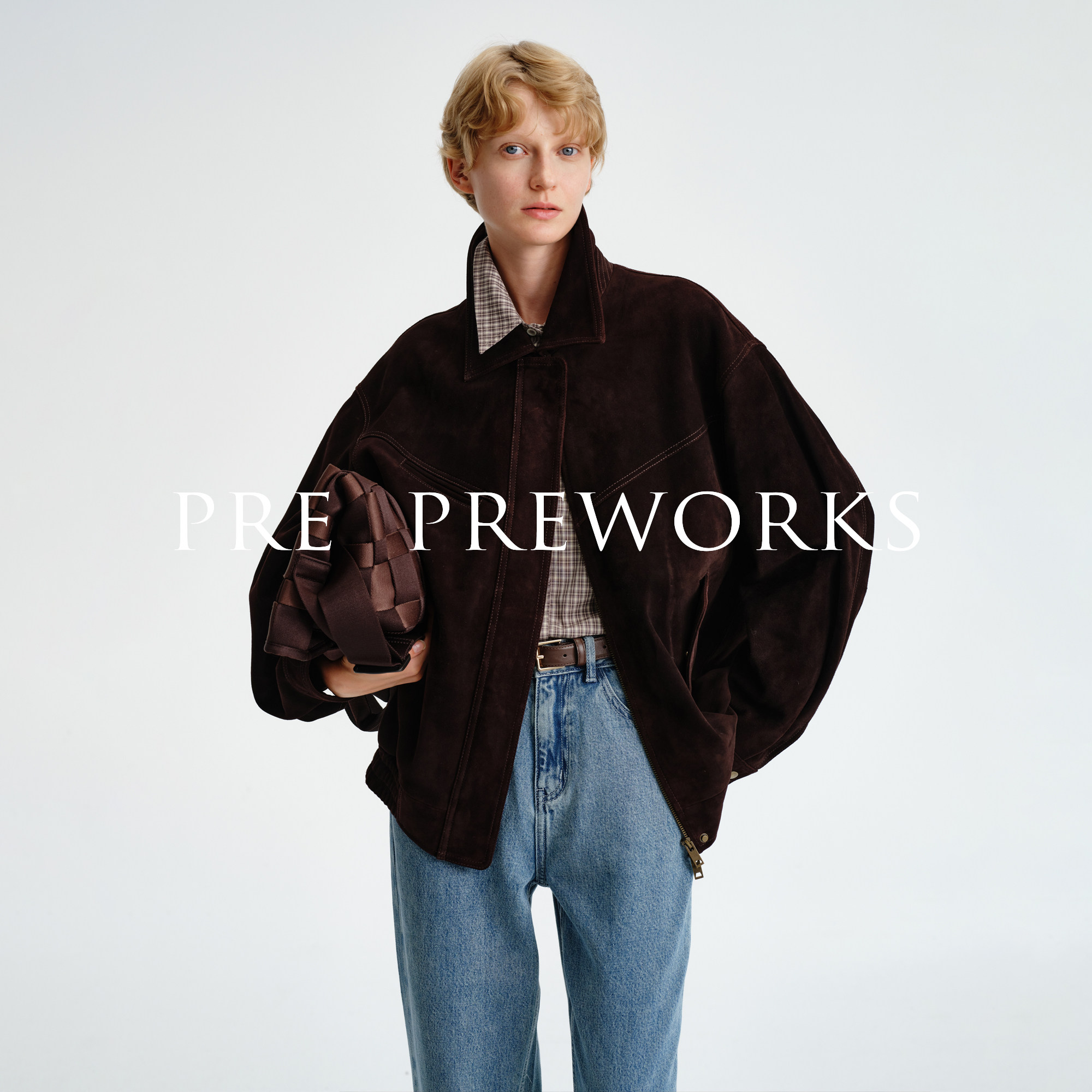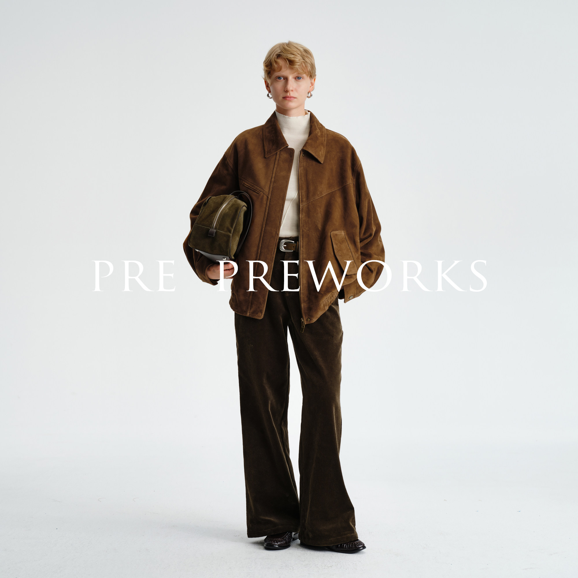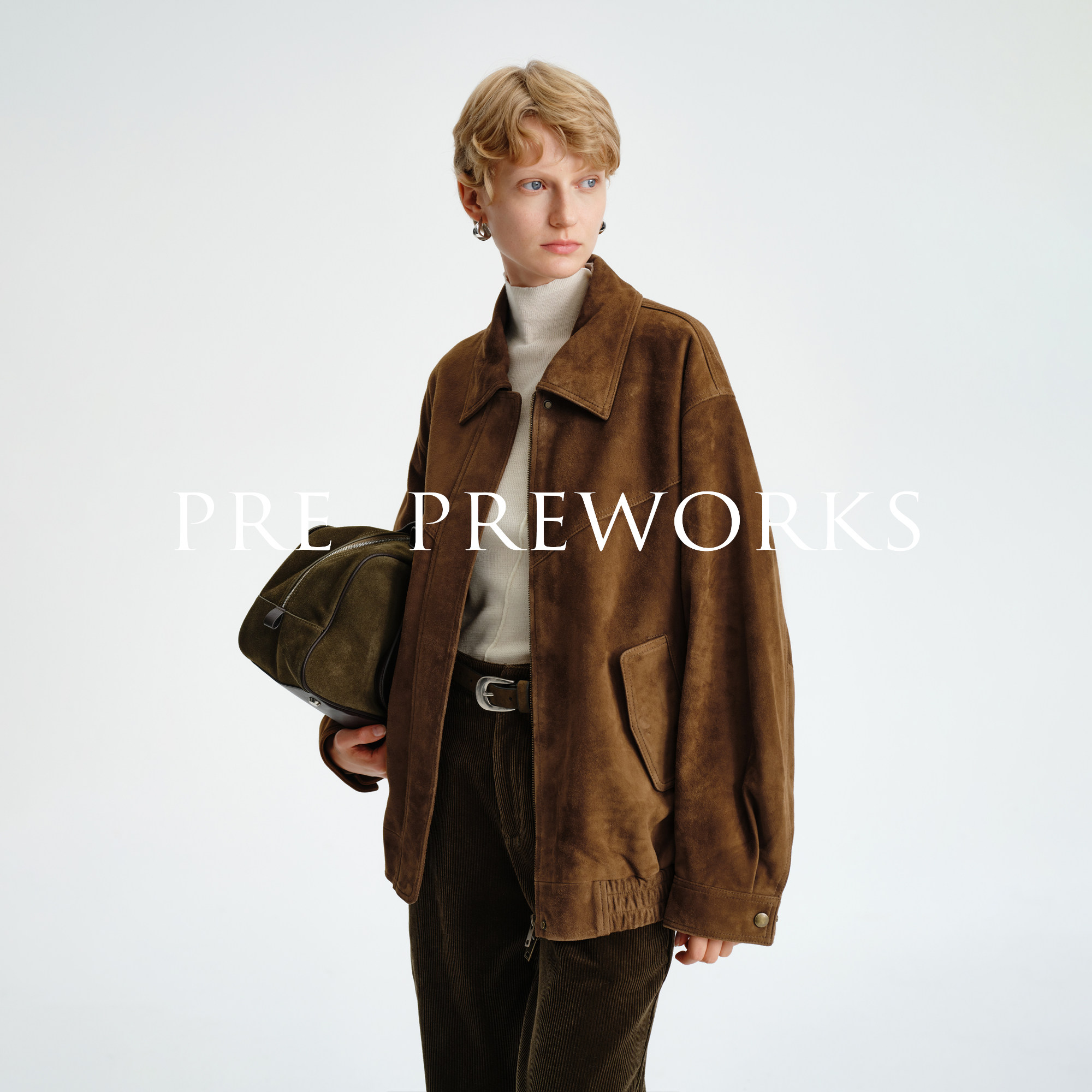 PRE PREWORKS美拉德复古100%羊皮反绒复古麂皮绒翻领夹克外套