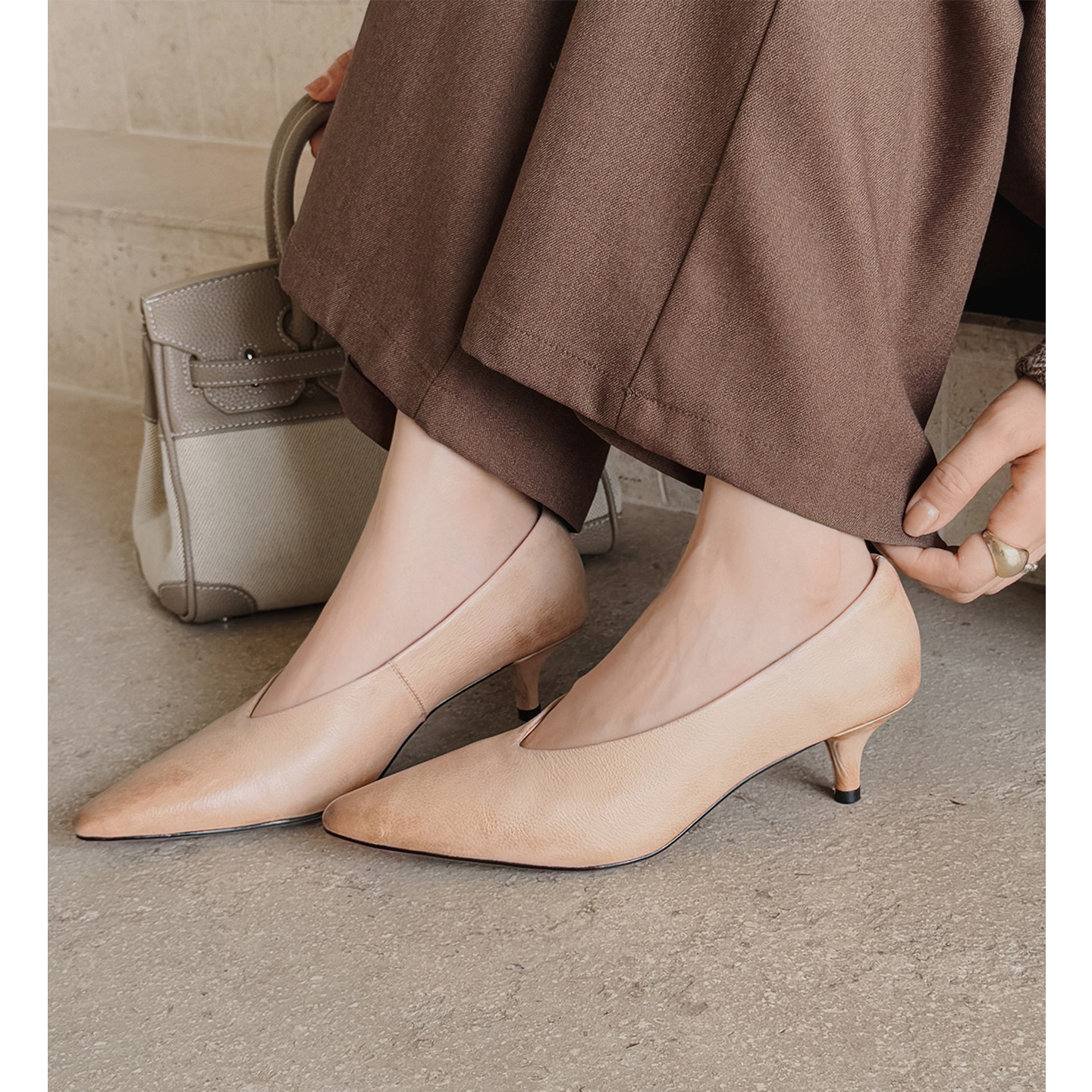 设计师单品羊皮单鞋 Cihi设计女鞋 红底侧空尖头浅口2025新款