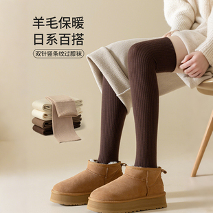 过膝袜女长筒秋冬季 纯棉保暖加绒加厚防滑护膝腿套大腿长腿高筒袜