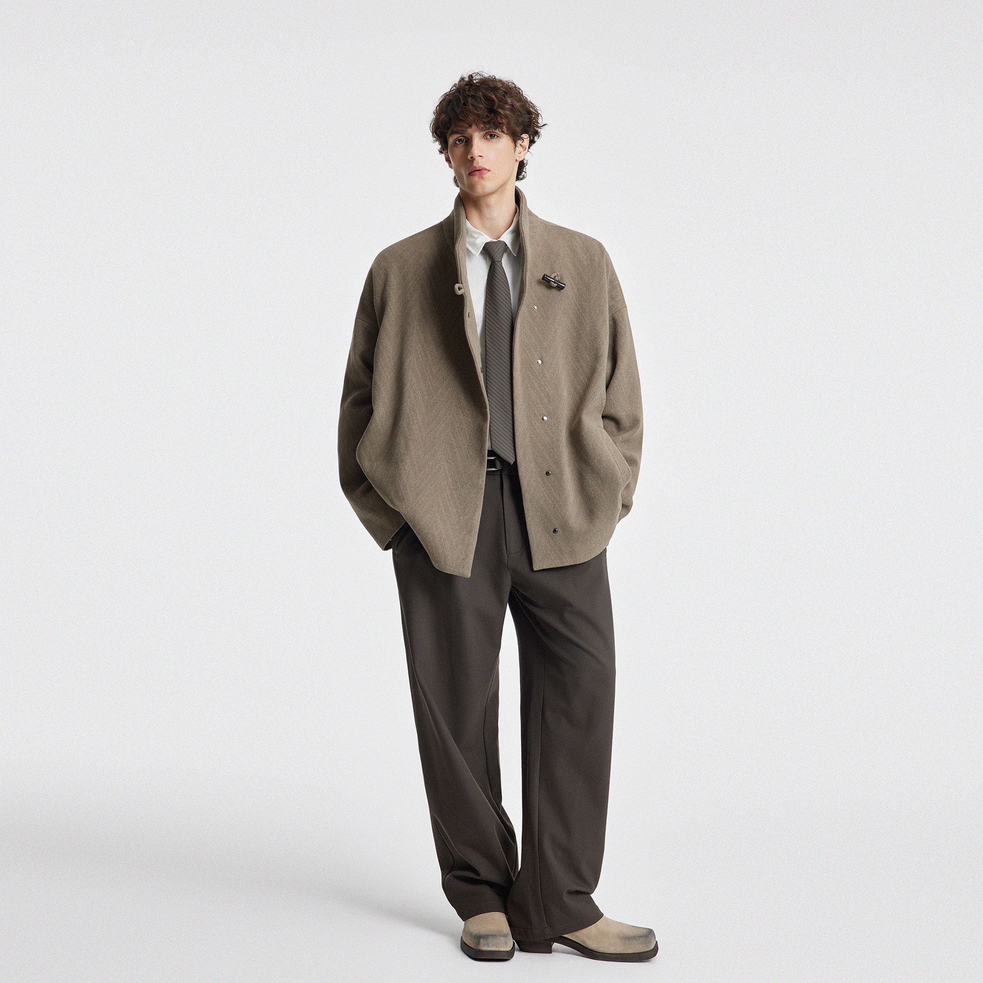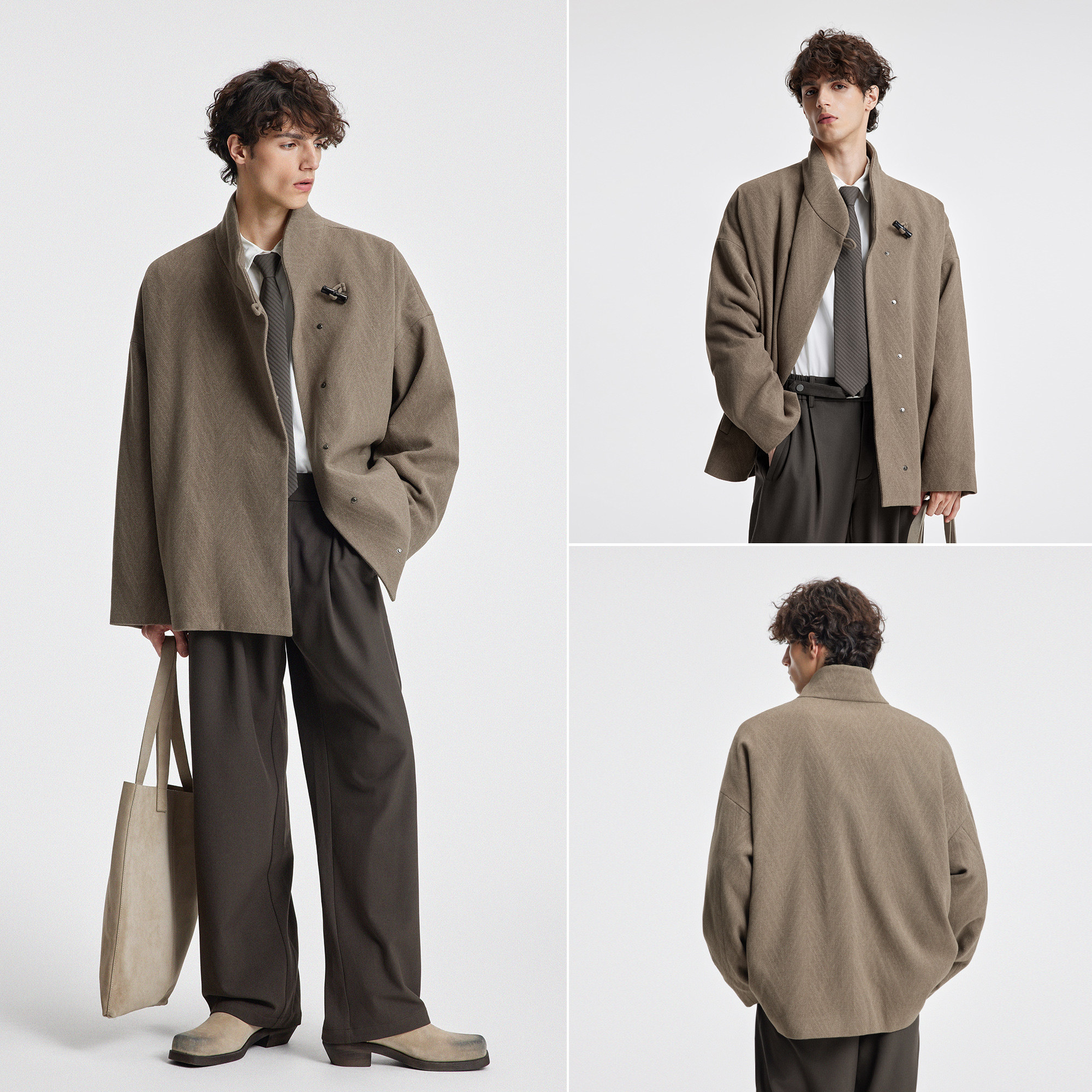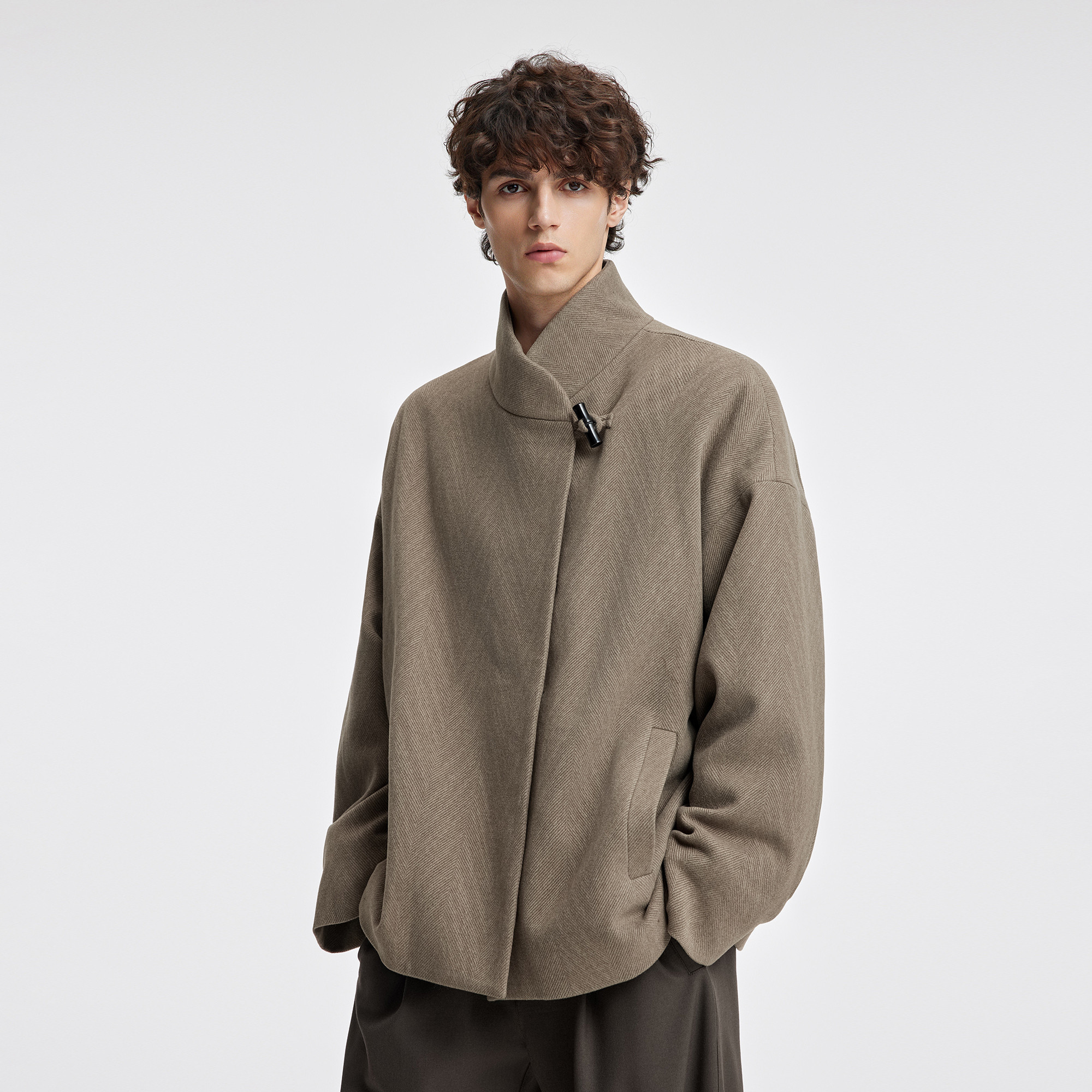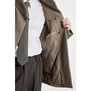 竹节纽扣 立领斜襟廓形毛呢大衣 BODYDREAM含羊毛绗棉外套男士 冬季