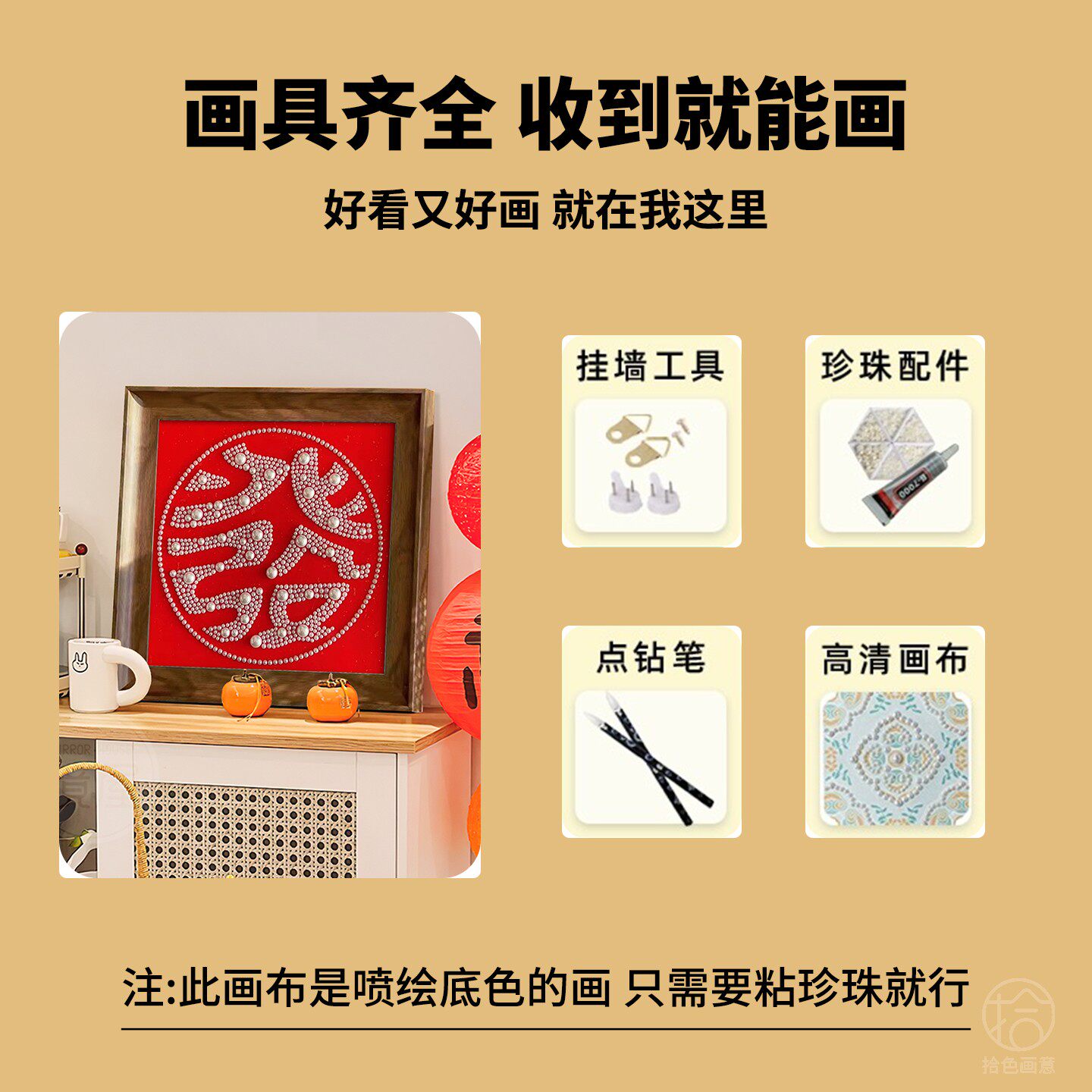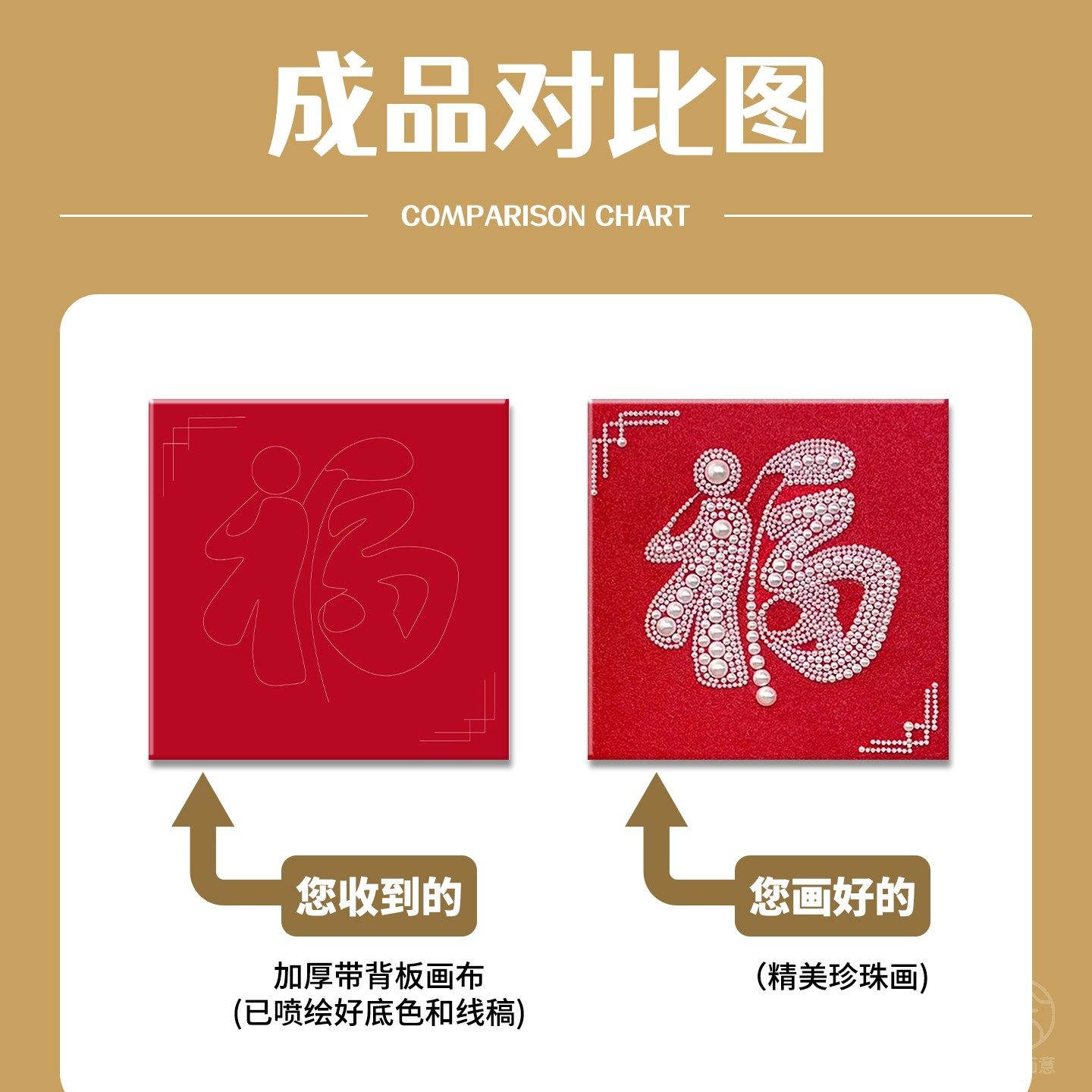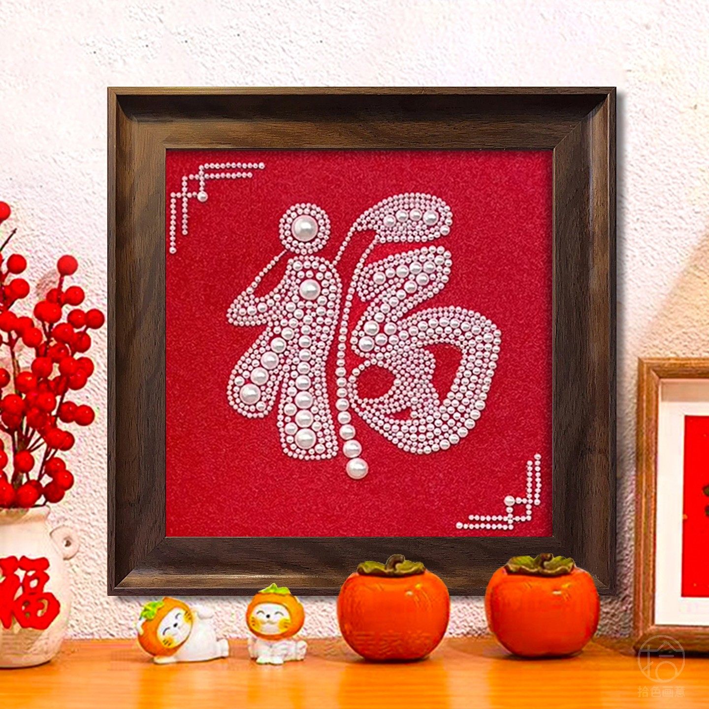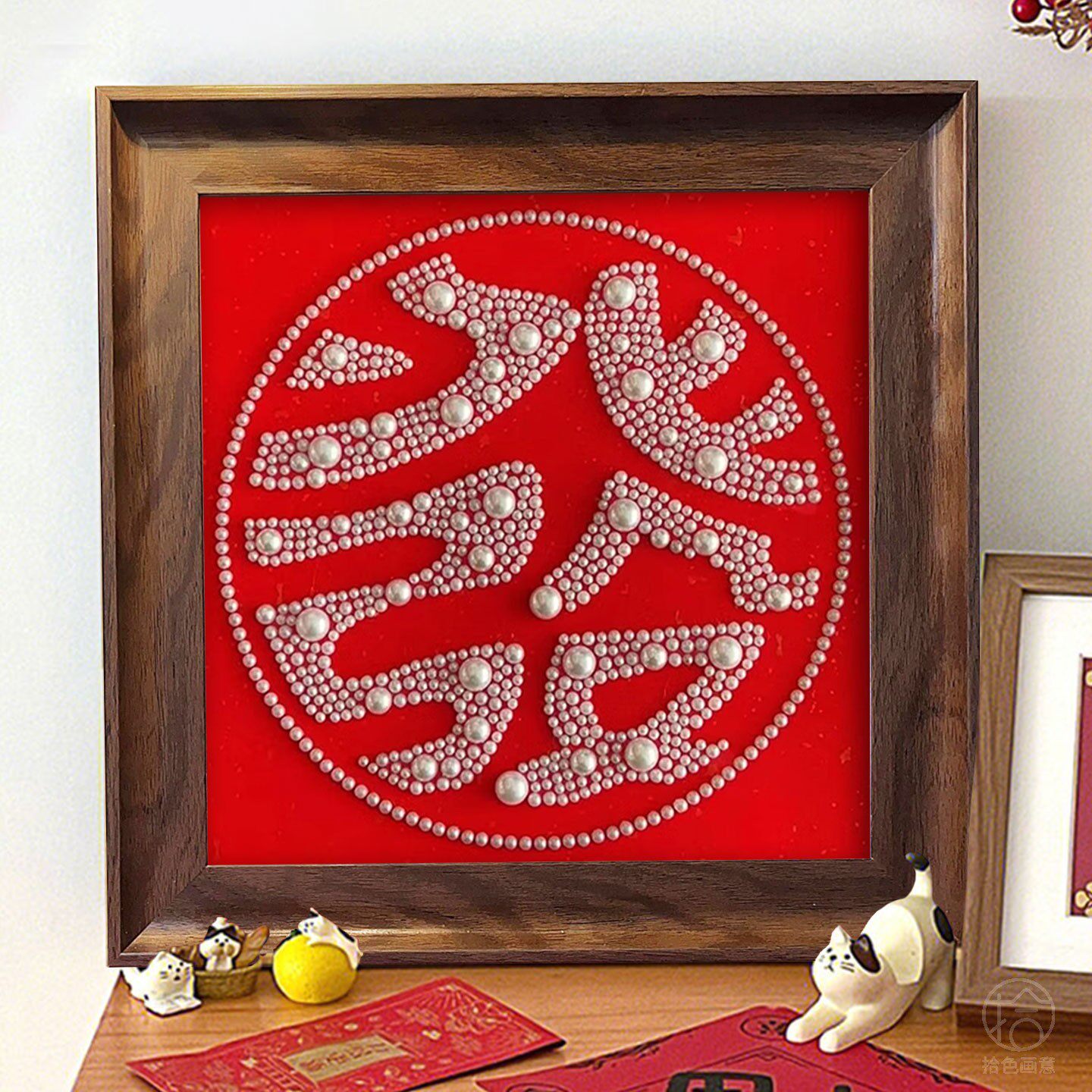 新中式 饰画 发财福字珍珠画diy材料包数字油画手工填充活动礼物装