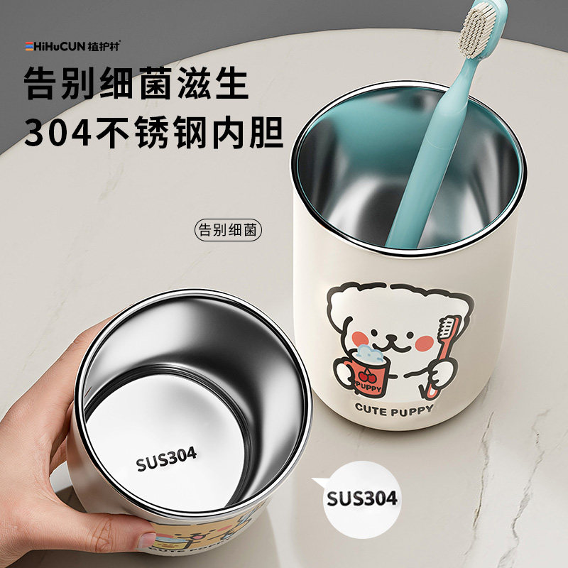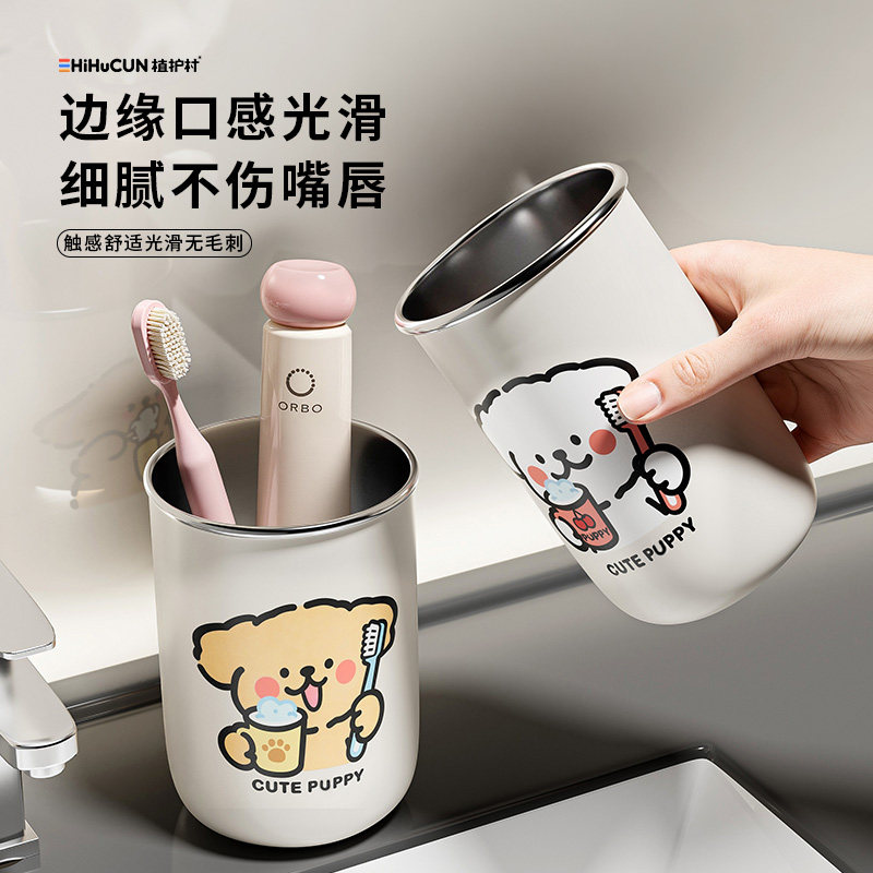 304不锈钢阶梯原创卡通小狗家族洗漱杯简约家用高颜值情侣漱口杯
