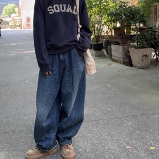 水洗做旧深蓝色日系气球牛仔裤 iamstudio 毒家定制2100超有范
