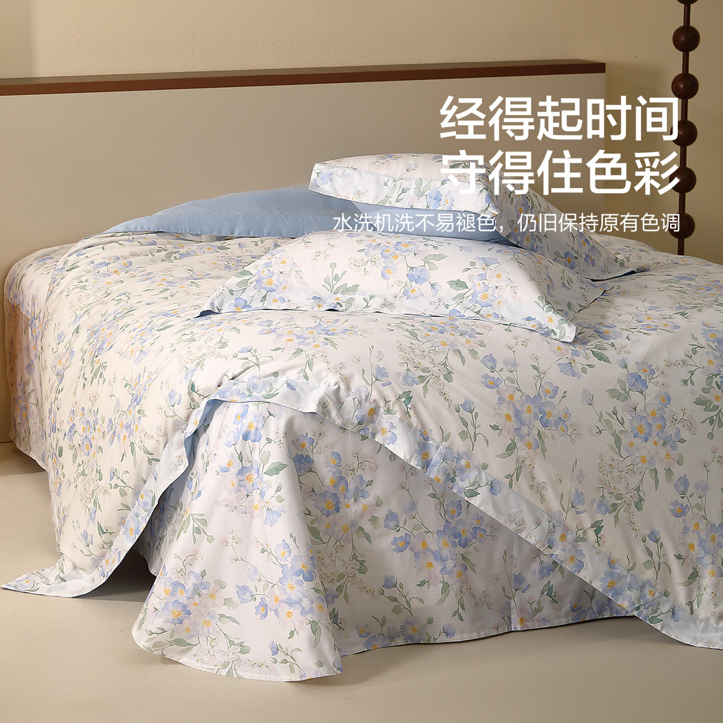 水星家纺60支长绒棉贡缎床单单件裸睡抑菌被单印花床品2025新品