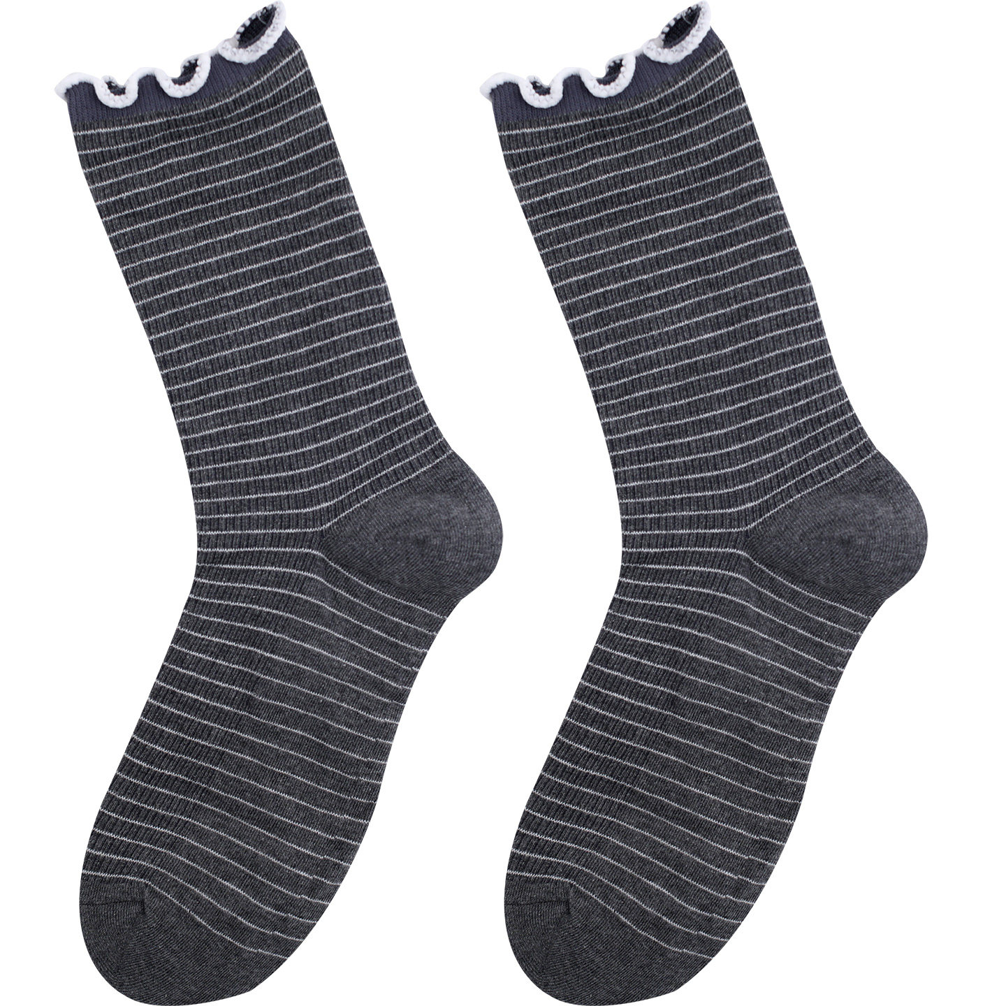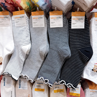 kikiyasocks韩国东大门进口袜子女春秋条纹木耳边不勒棉中长筒袜