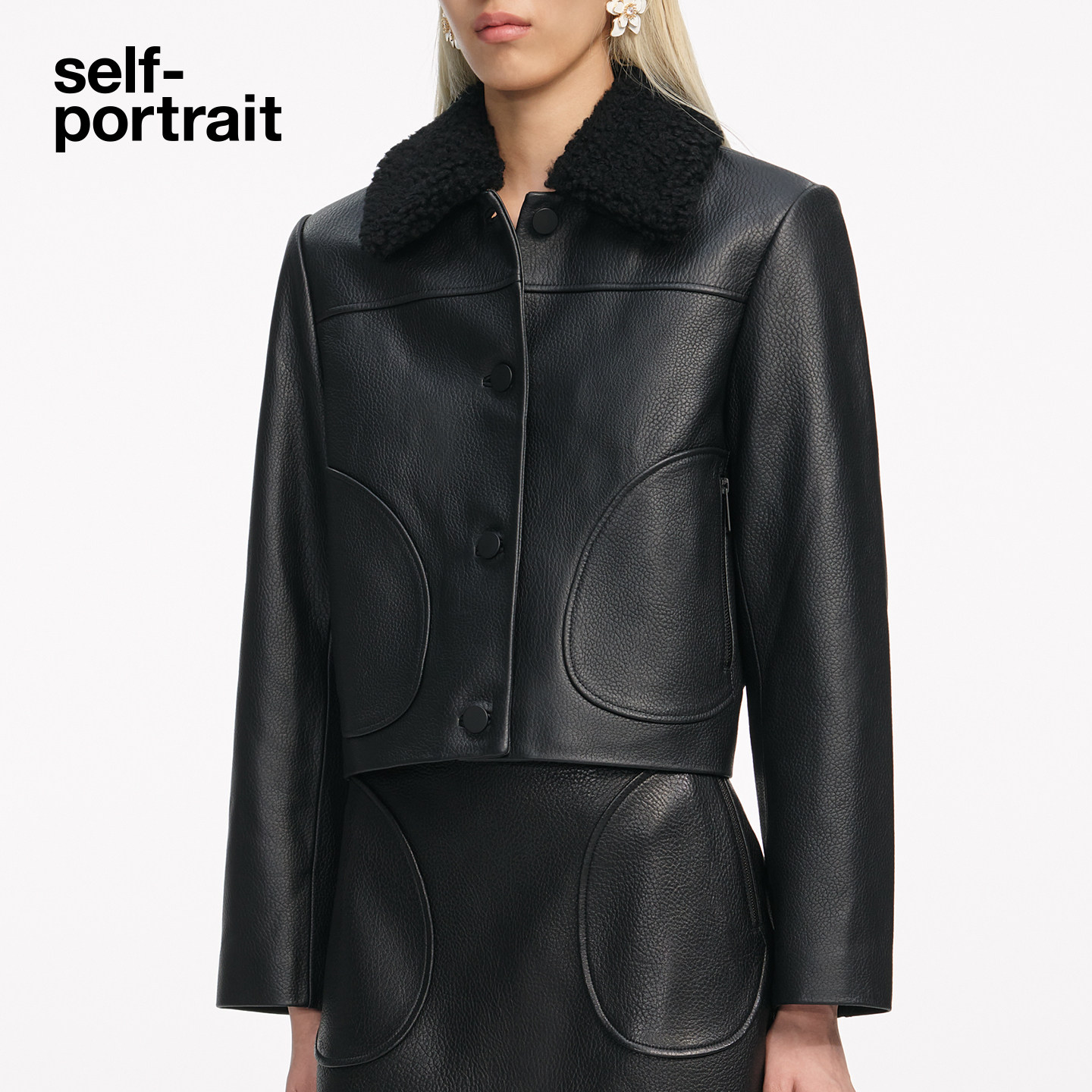 黑短款 self 经典 2025秋冬新款 毛领羊皮皮衣外套上衣 portrait