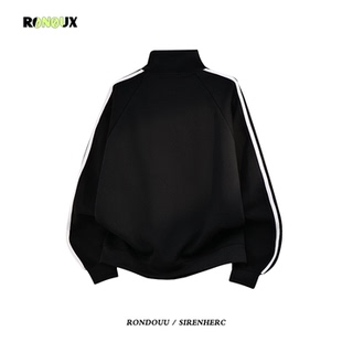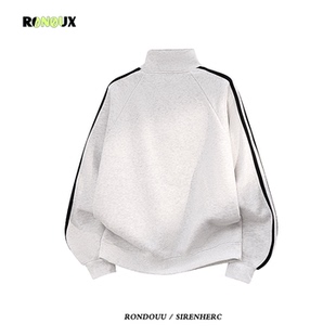 美式 复古oversize潮牌三条杠半拉链立领卫衣男女宽松运动情侣外套