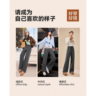 百搭拖地长裤 子宽松直筒阔腿裤 女秋冬加绒裤 pusumede软糯休闲裤