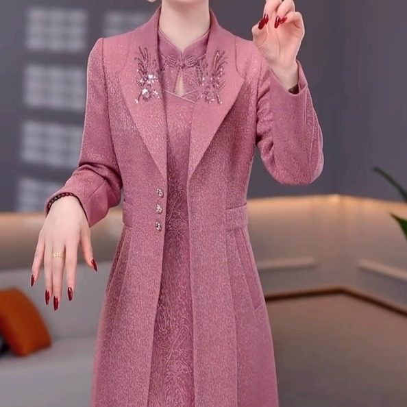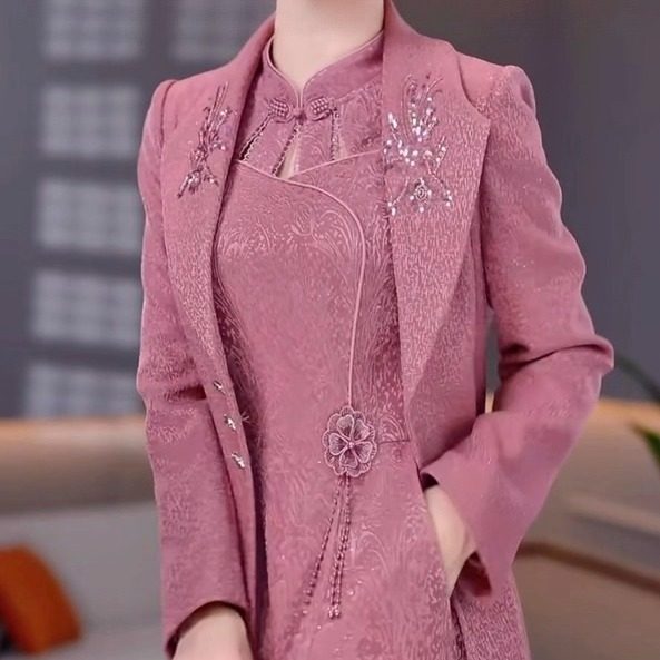 高档琉璃精纺两件套改良旗袍礼服裙2025秋季 气质减龄显瘦套裙 新款