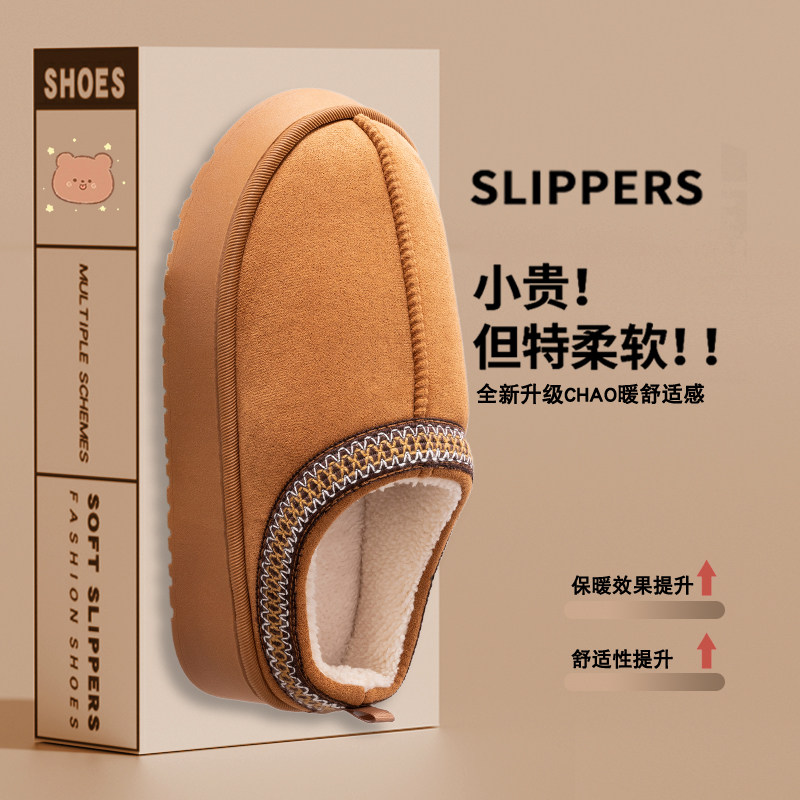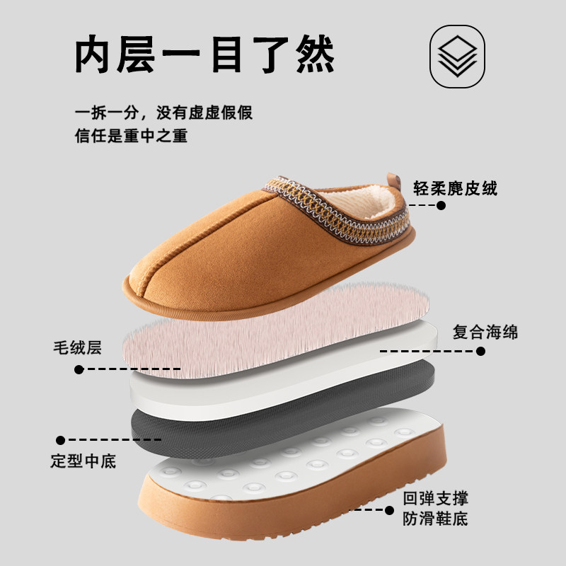 月子鞋 麂皮绒女秋冬室内外居家用男厚底毛毛拖鞋 2025年新款 棉拖鞋